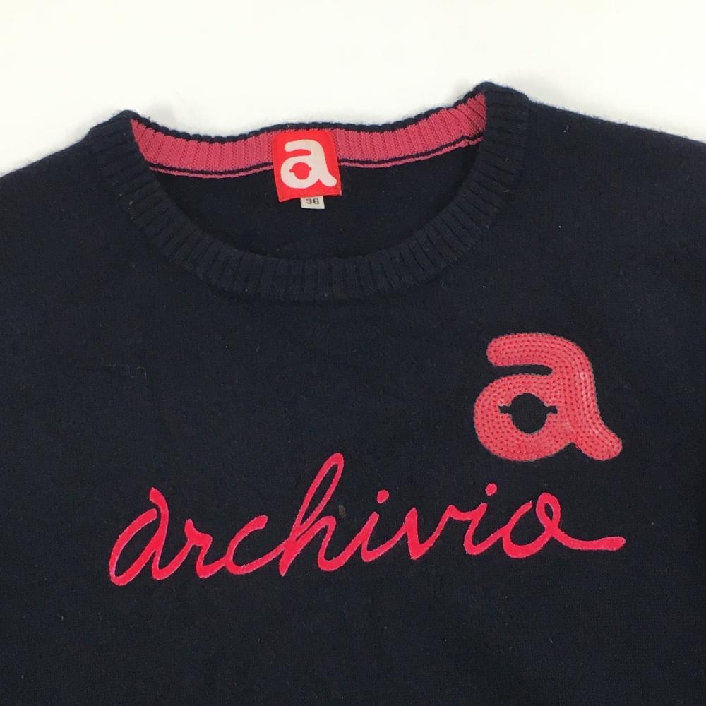 【美品】アルチビオ セーター ダークネイビー ウール混 ロゴ レディース 36(S) ゴルフウェア archivio