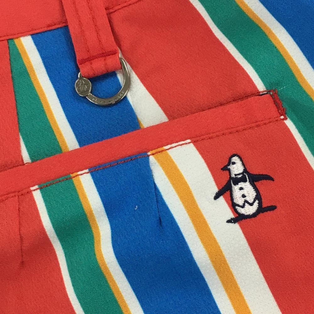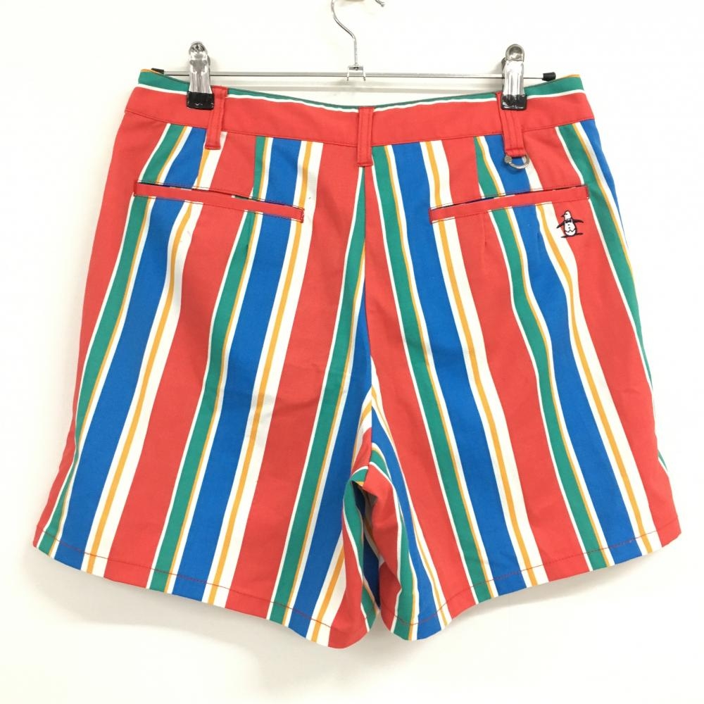 【美品】マンシングウェア キュロットスカート レッド×ブルー ストライプ バックロゴ レディース 15 ゴルフウェア Munsingwear