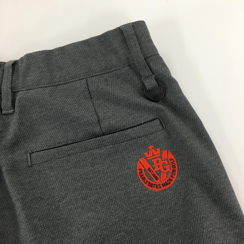 【超美品】パーリーゲイツ パンツ グレー ロゴレッド 30周年 内側ニコちゃん スマイル レディース 0(S) ゴルフウェア PEARLY GATES