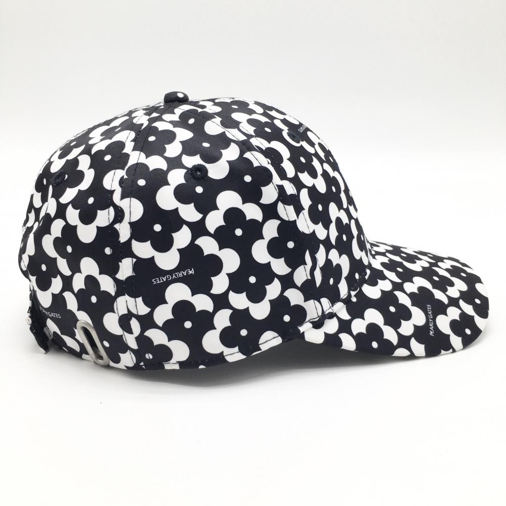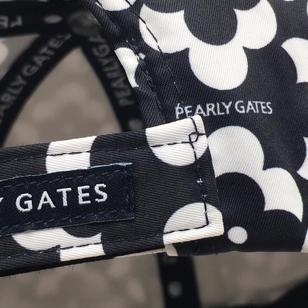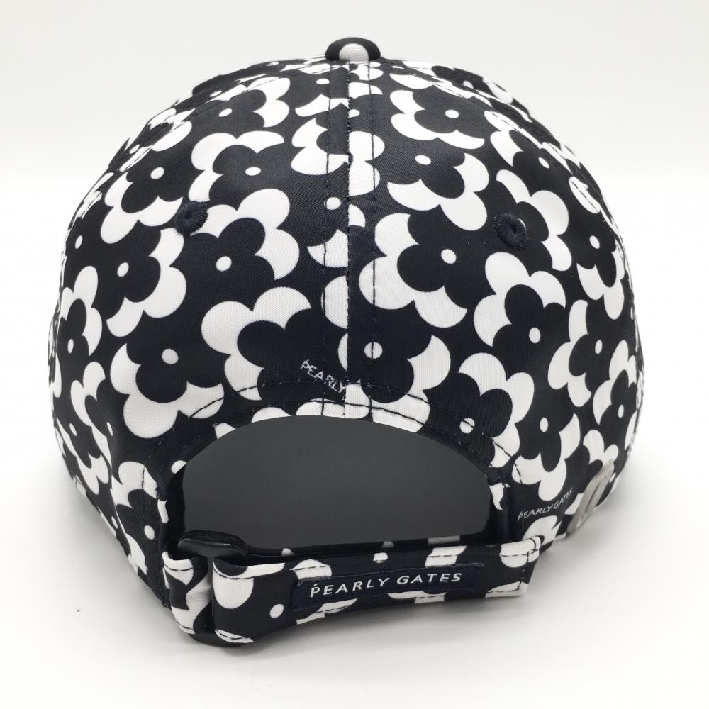 【美品】パーリーゲイツ キャップ 白×黒 花柄 汗取りパッド ロゴ刺しゅう FR ゴルフウェア PEARLY GATES