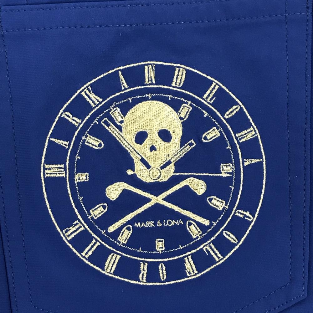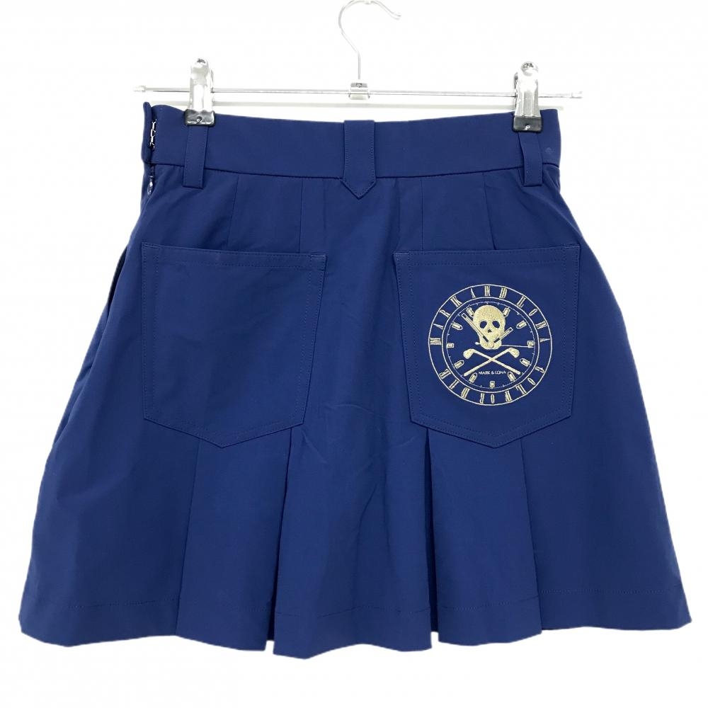 【美品】マークアンドロナ ストレッチスカート ブルーネイビー系×イエロー 裾プリーツ レディース 36(S) ゴルフウェア MARK&LONA