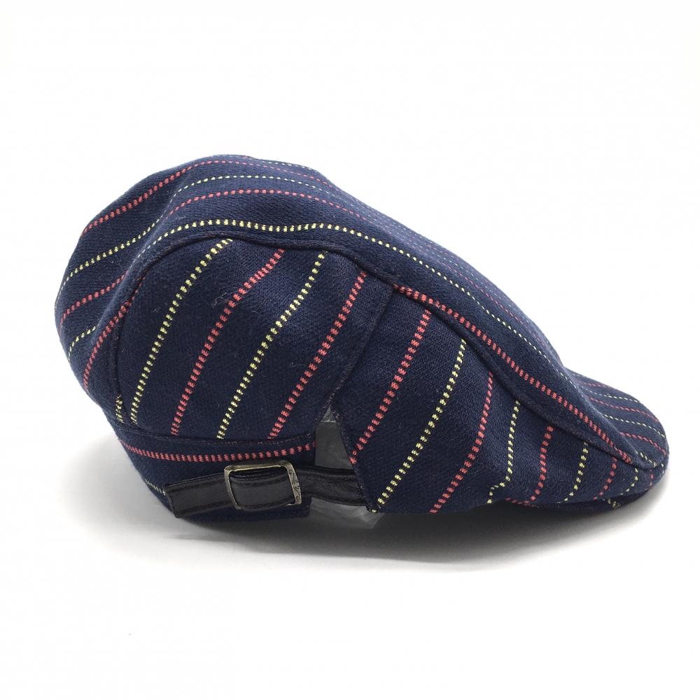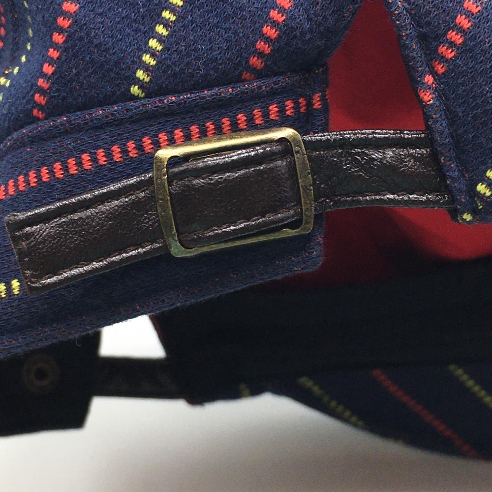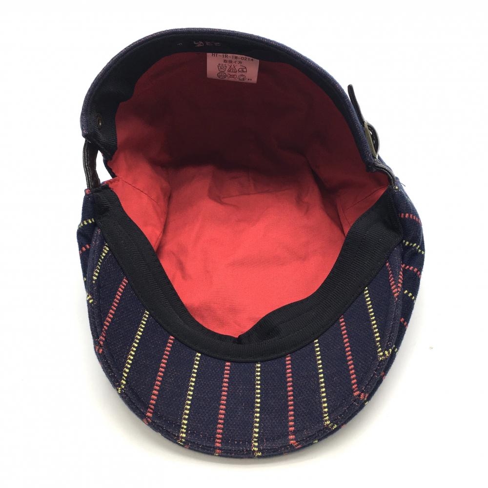 【美品】23区スポーツ キャスケット帽 ネイビー×イエロー ストライプ ロゴ刺しゅう F ゴルフウェア 23区
