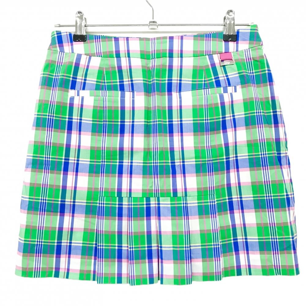 【超美品】ポロゴルフ スカート グリーン×ブルー チェック 後ろプリーツ レディース 0 150/68A ゴルフウェア Ralph Lauren