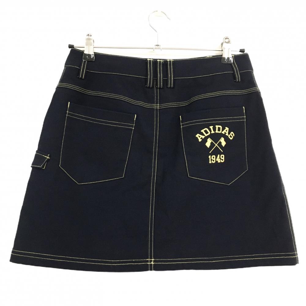 【美品】アディダス スカート ダークネイビー×イエロー系 ステッチ バックロゴ刺しゅう 毛羽立ち少 レディース M/M ゴルフウェア adidas