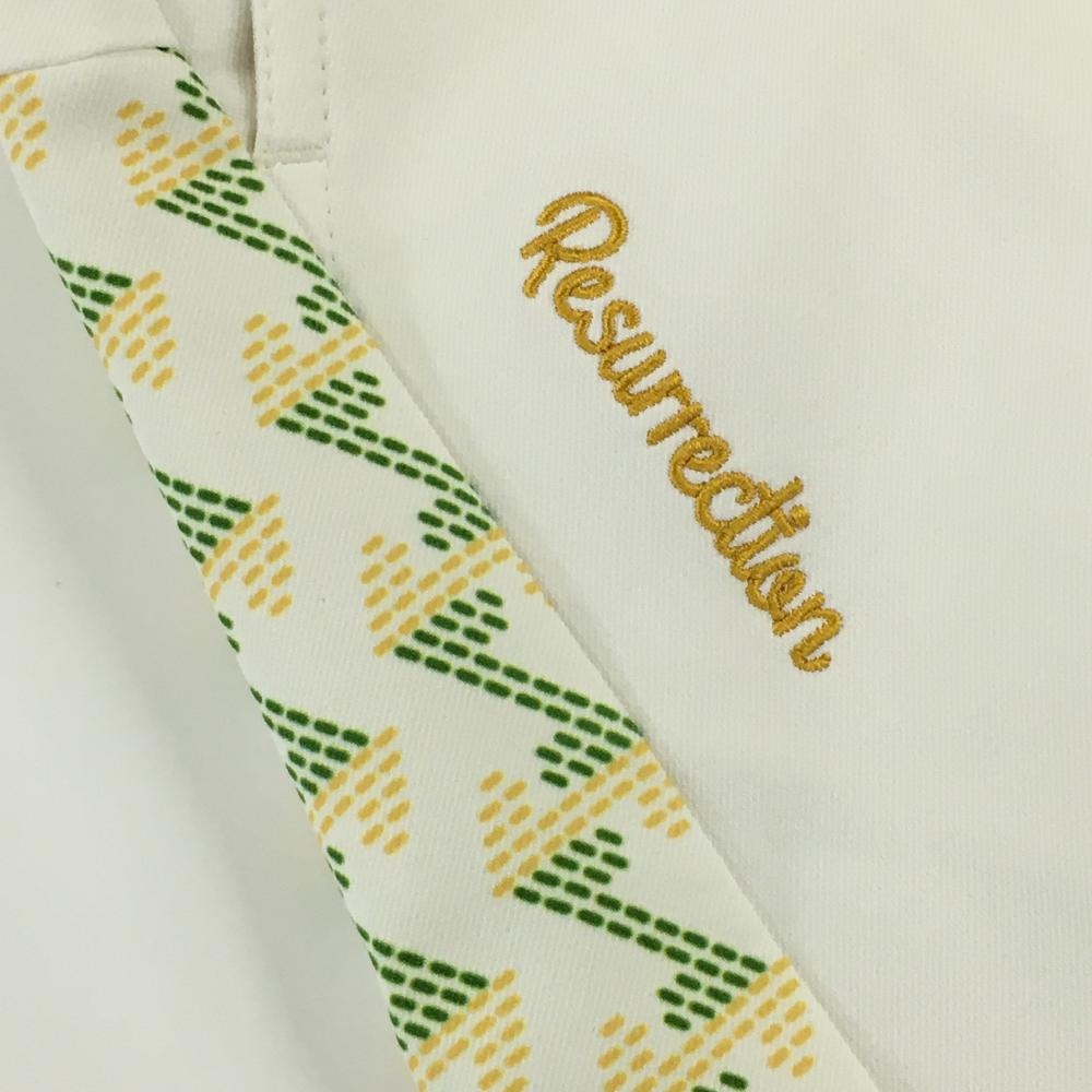 【美品】レザレクション スカート 白×グリーン×イエロー 後ろ総柄 後ろプリーツ ストレッチ レディース XS ゴルフウェア Resurrection