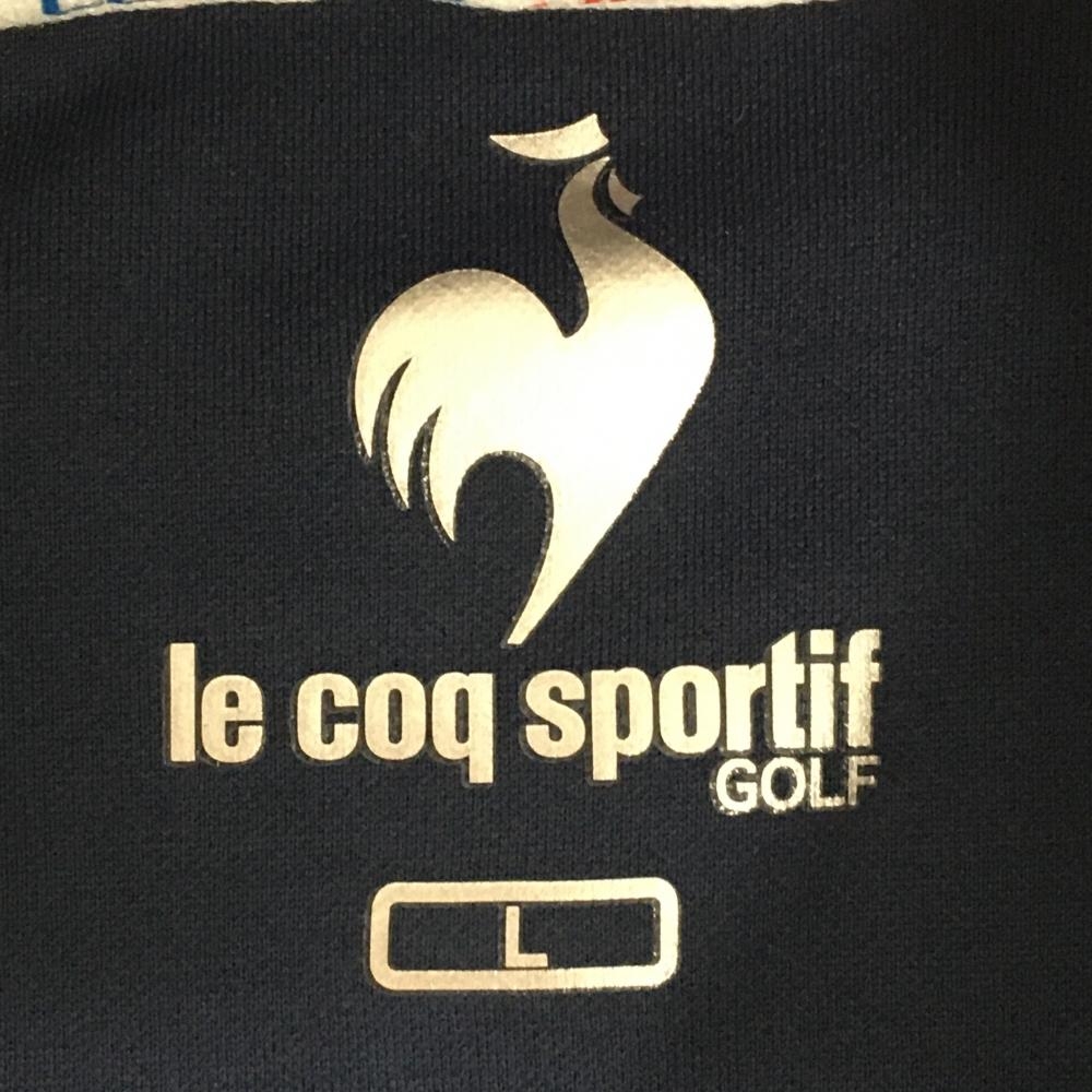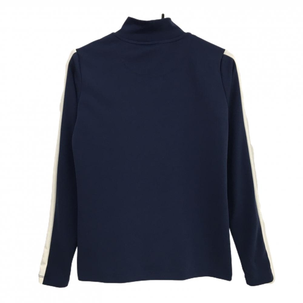 【超美品】ルコックゴルフ 長袖ハイネックシャツ ネイビー×白 フロントビッグロゴ レディース L ゴルフウェア le coq sportif
