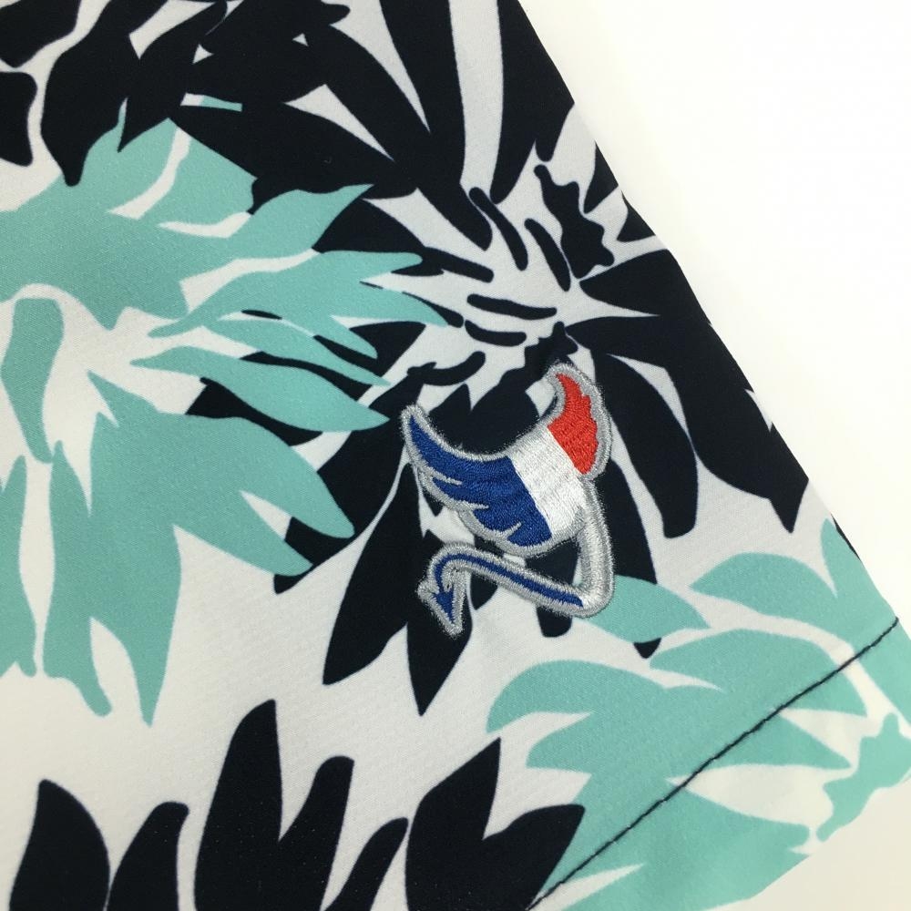 【超美品】クランク スカート 白×ネイビー×ライトブルー 花柄 ボックスプリーツ レディース XL ゴルフウェア CLUNK