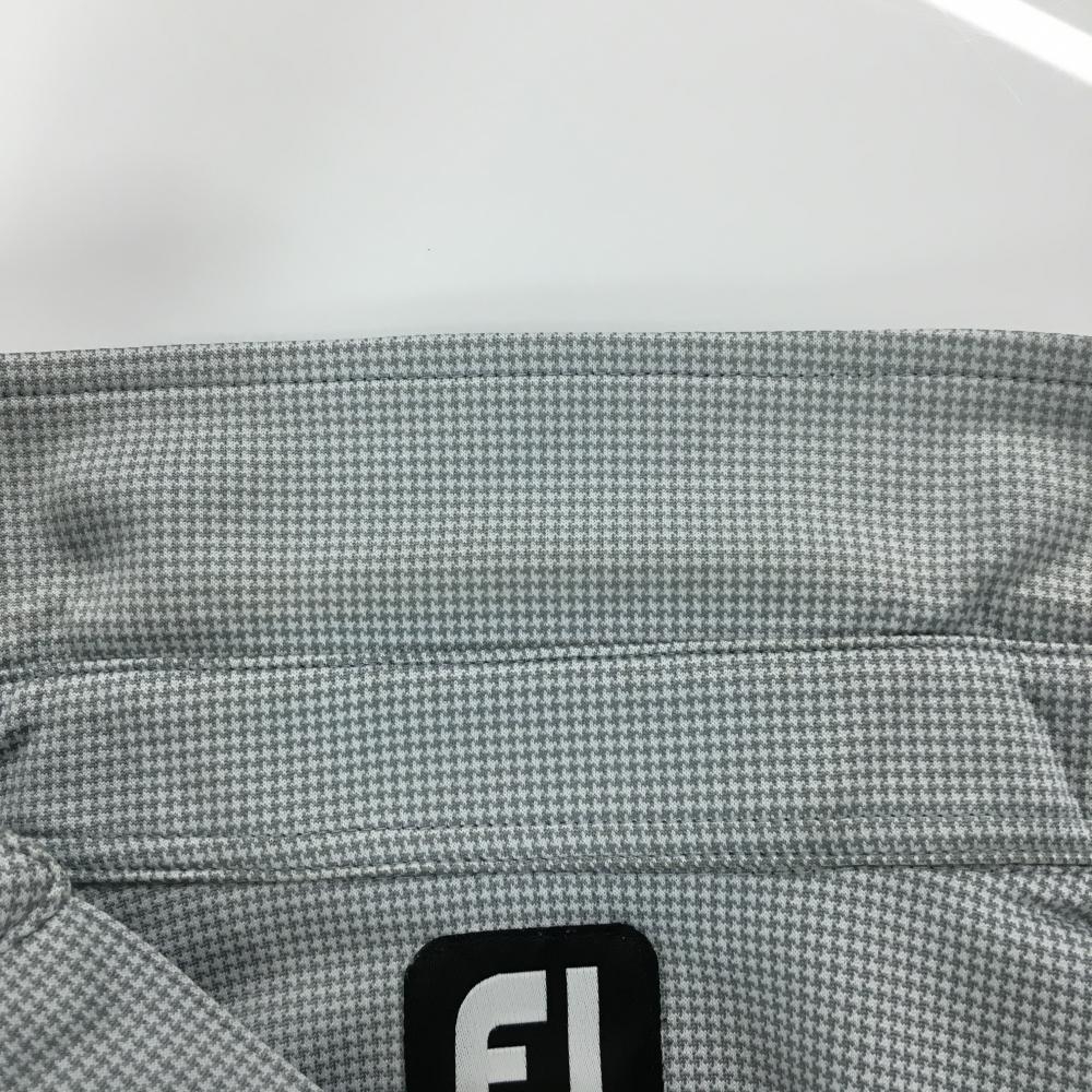 フットジョイ 半袖ポロシャツ 白×ライトグレー 地模様 ロゴ刺しゅう ボタンダウン メンズ L ゴルフウェア FootJoy