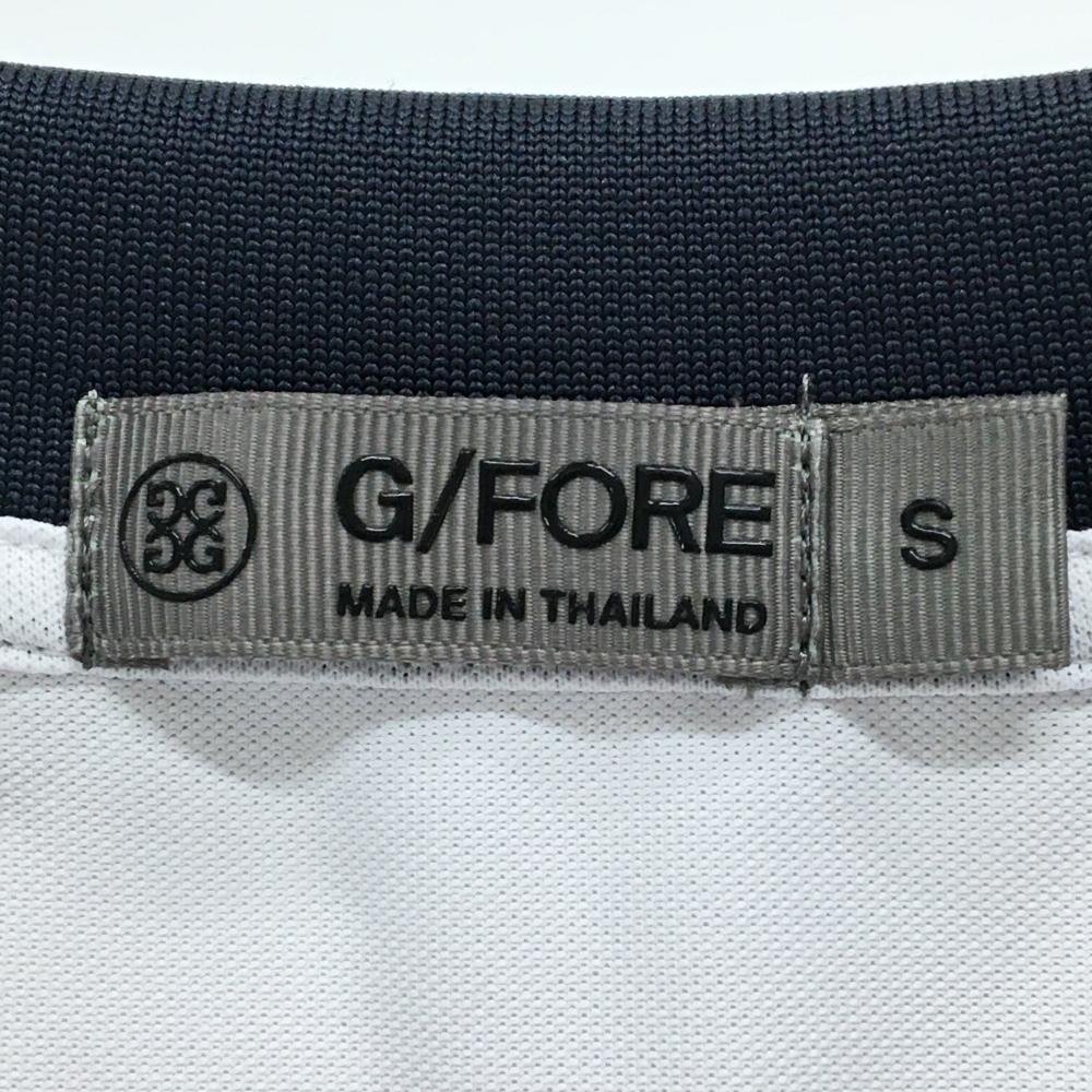 ジーフォア 半袖ポロシャツ 白×ネイビー 前面刺しゅう総柄 メンズ S ゴルフウェア G/FORE
