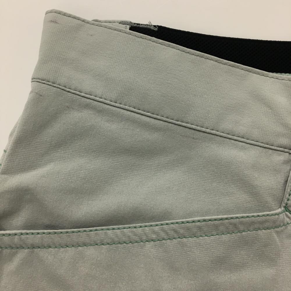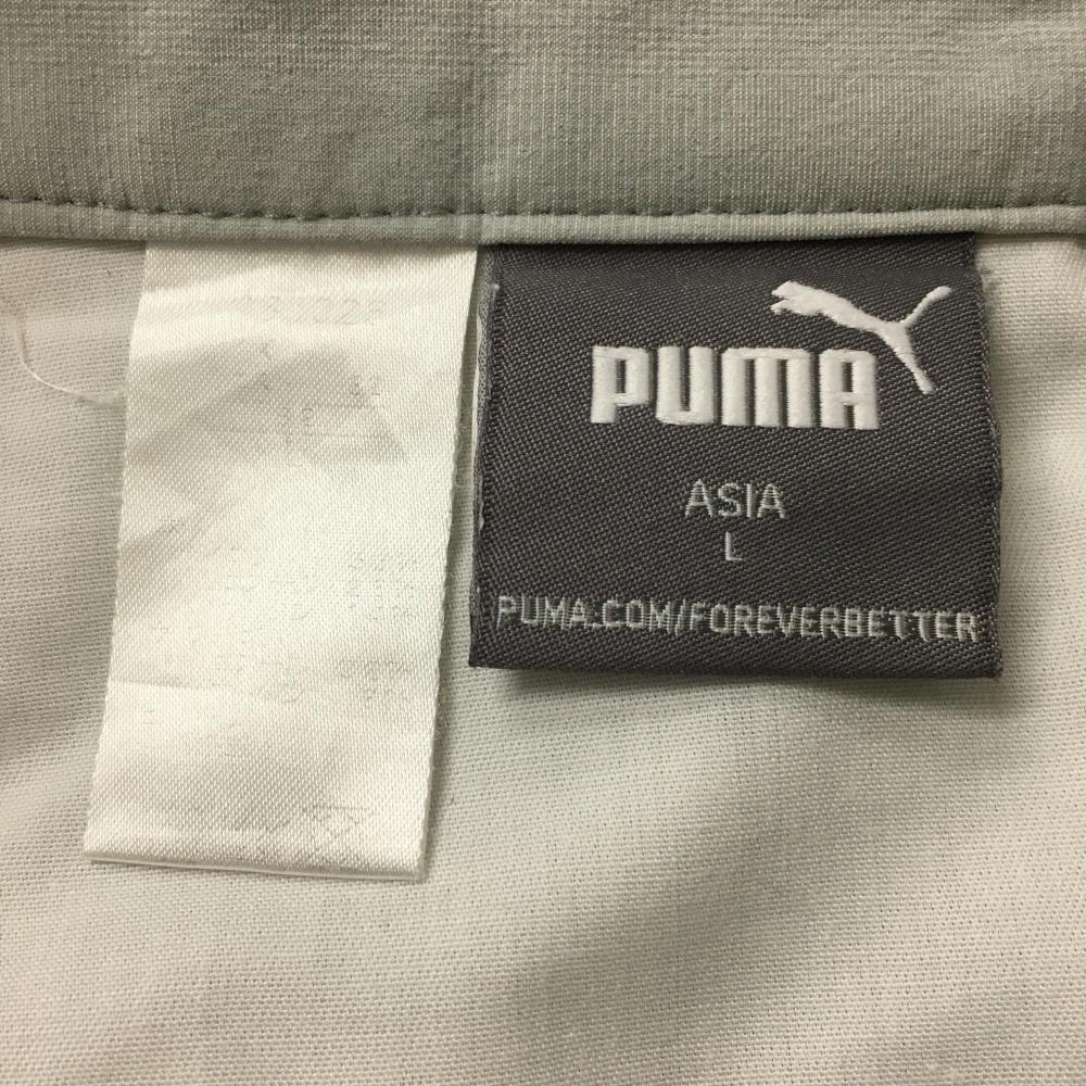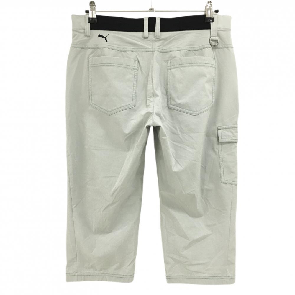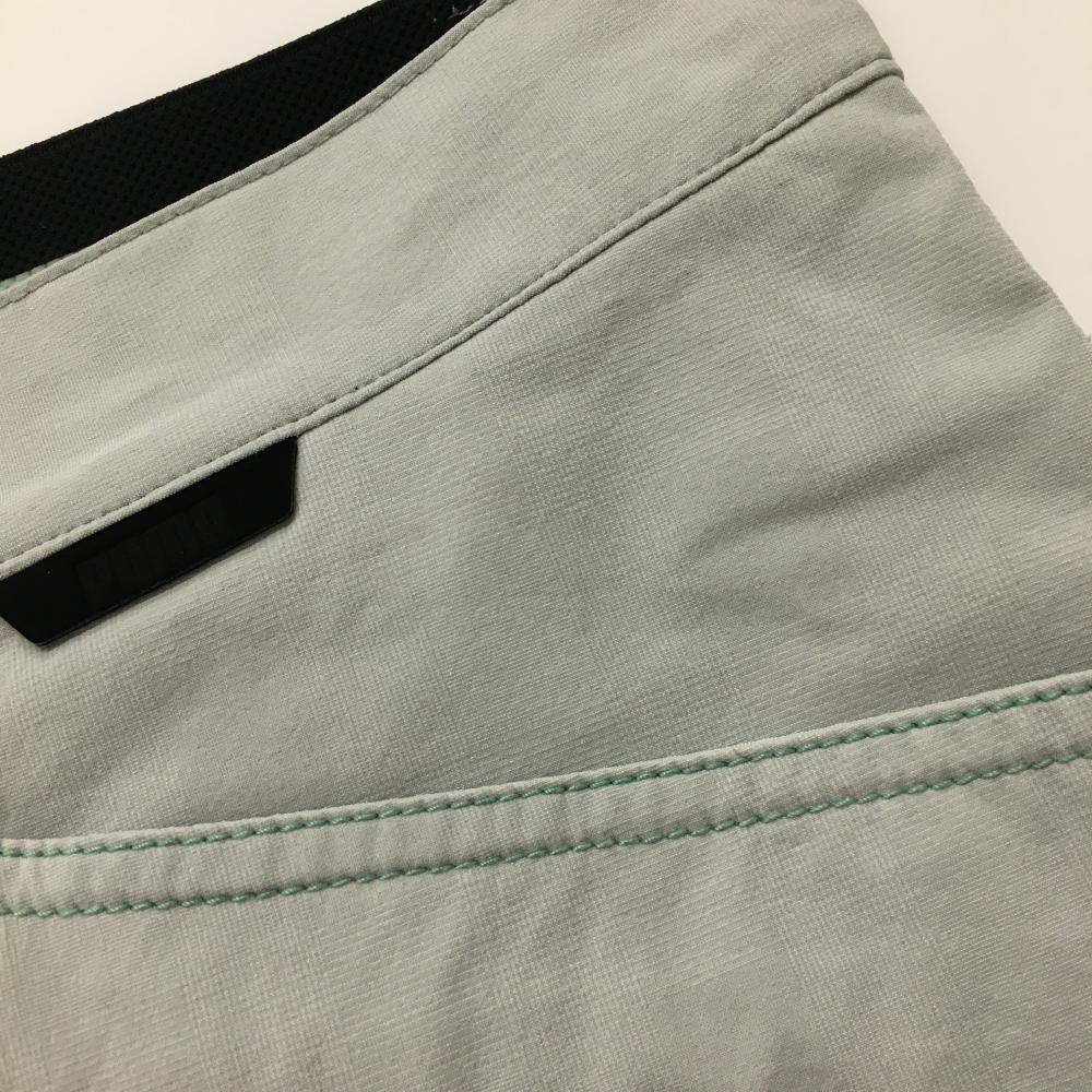 【美品】プーマ 半端丈パンツ ライトグレー グリーンステッチ ウエスト後ろゴム ロゴ刺しゅう メンズ L ゴルフウェア PUMA
