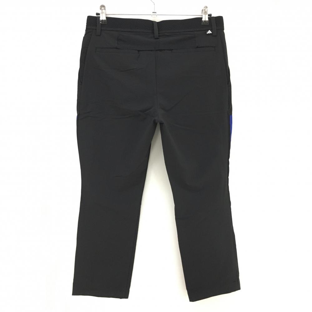 【美品】アディダス パンツ 黒×ブルー サイド3ライン ストレッチ メンズ 88 ゴルフウェア adidas