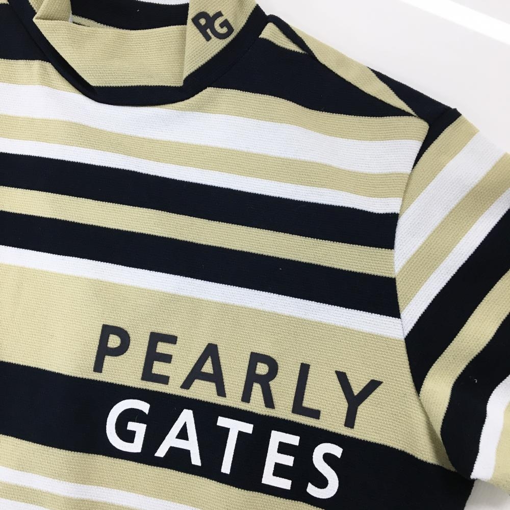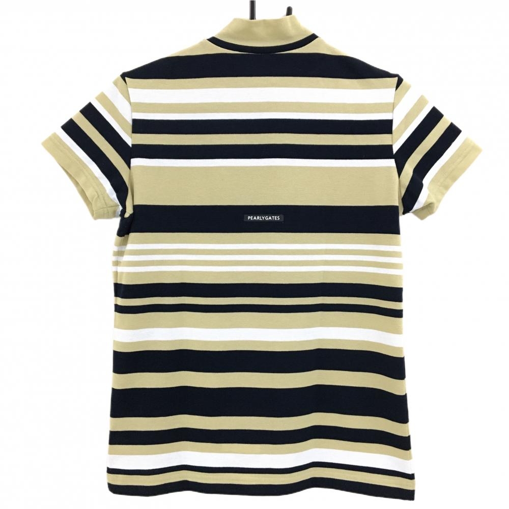 【超美品】パーリーゲイツ 半袖ハイネックシャツ ベージュ×ダークネイビー×白 レディース 1(M) ゴルフウェア 2024年モデル PEARLY GATES