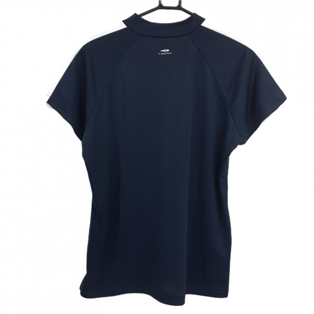 【超美品】ティゴラ 半袖ハイネックシャツ ネイビー×白 肩ライン 胸プリント レディース 2XL ゴルフウェア TIGORA