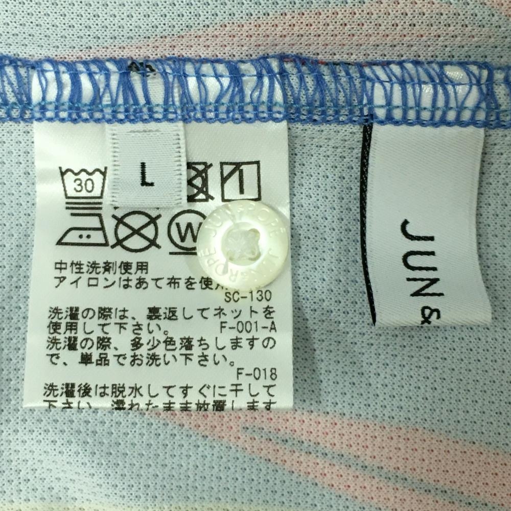 【超美品】ジュンアンドロペ 半袖シャツ スモーキーブルー×ライトイエロー×ライトブラウン 総柄 メンズ L ゴルフウェア JUN&ROPE