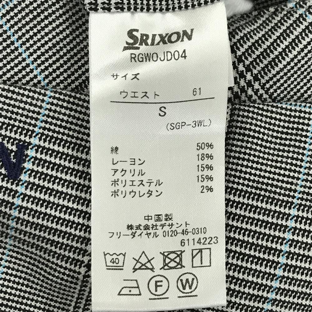 【美品】スリクソンバイデサント パンツ 白×黒×ライトブルー グレンチェック ストレッチ レディース S ゴルフウェア SRIXON