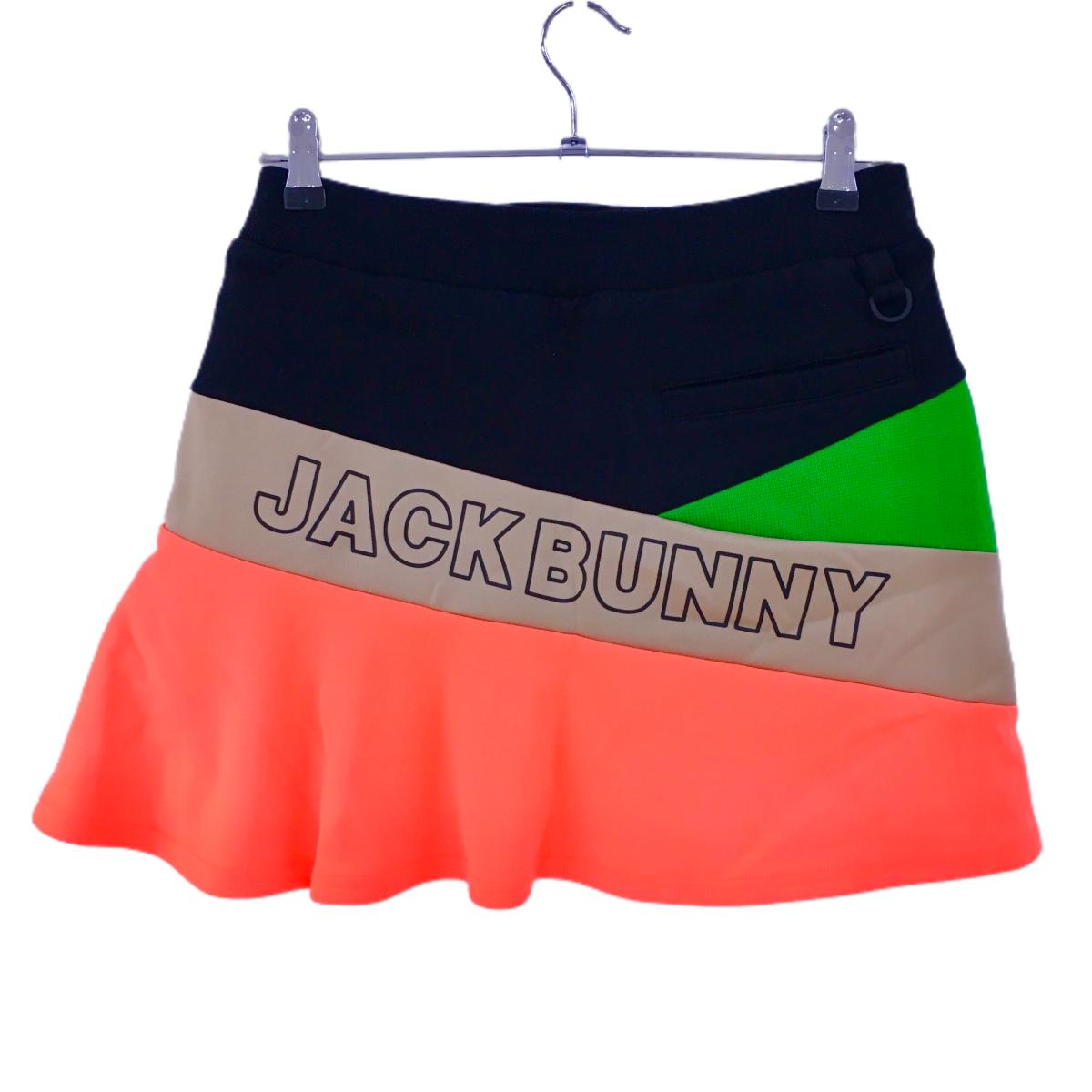 【超美品】ジャックバニー スカート 黒×蛍光オレンジ フロントロゴ 一部ニット生地 レディース 2(L) ゴルフウェア Jack Bunny