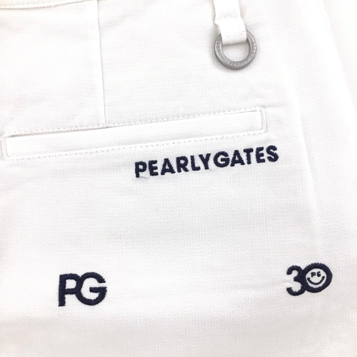 【超美品】パーリーゲイツ スカート 白×ネイビー ロゴ総柄 30周年 ニコちゃん スマイル レディース 2(L) ゴルフウェア PEARLY GATES