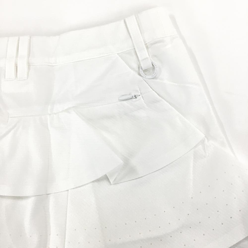 【新品】パーリーゲイツ スカート 白×黒 バックフリル サイドロゴプリント メッシュ裏地 レディース 0(S) ゴルフウェア PEARLY GATES