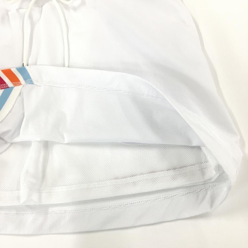 【新品】パーリーゲイツ スカート 白×ライトブルー ロゴピンク 4ライン ウエストゴム 調節紐 レディース 1(M) ゴルフウェア PEARLY GATES