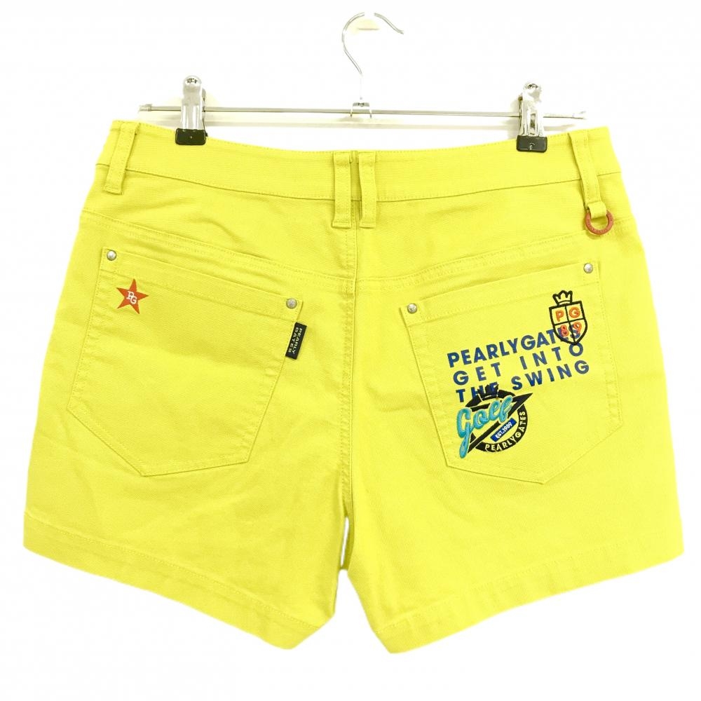 【超美品】パーリーゲイツ ショートパンツ イエロー ストレッチ ロゴ レディース 2(L) ゴルフウェア PEARLY GATES