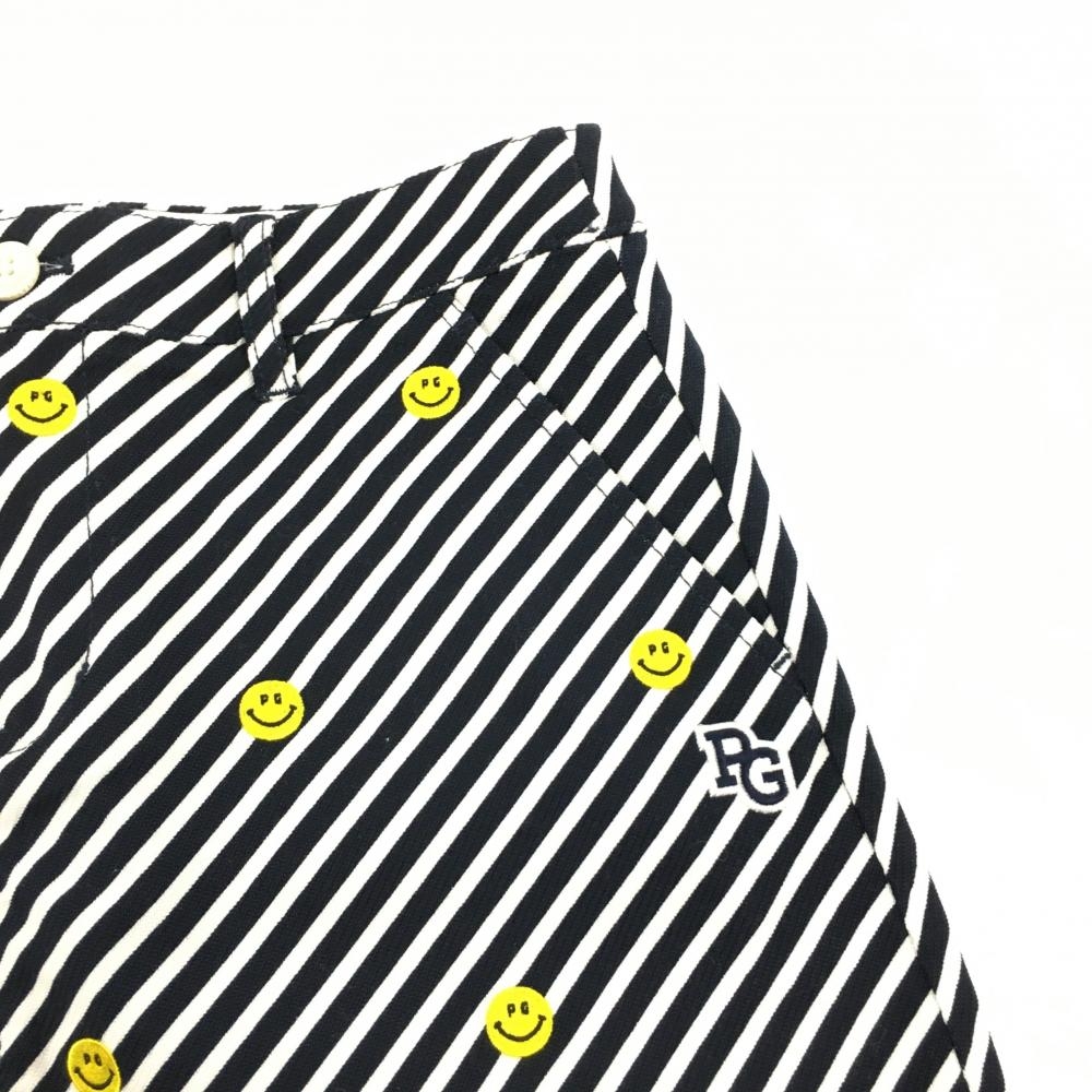 【超美品】パーリーゲイツ スカート 白×ダークネイビー 斜めストライプ ニコちゃん総柄 レディース 1(M) ゴルフウェア PEARLY GATES