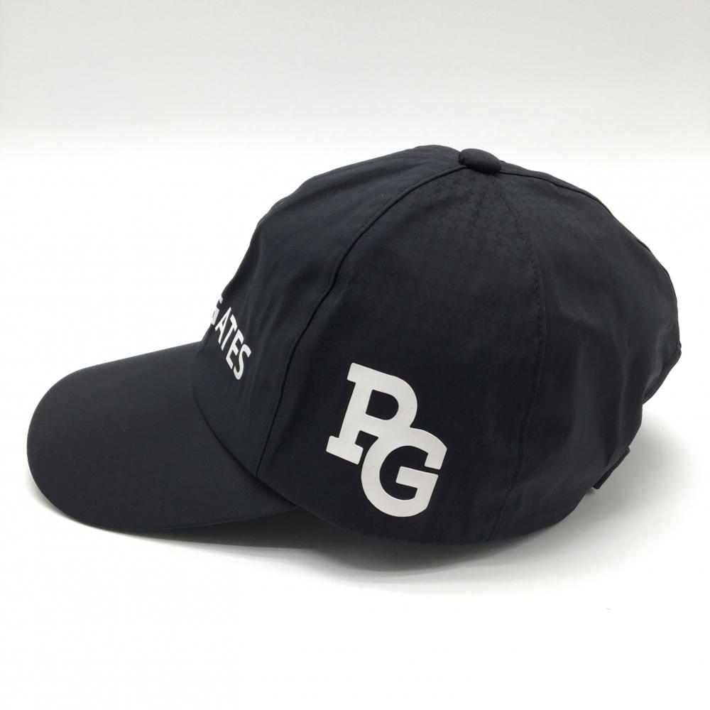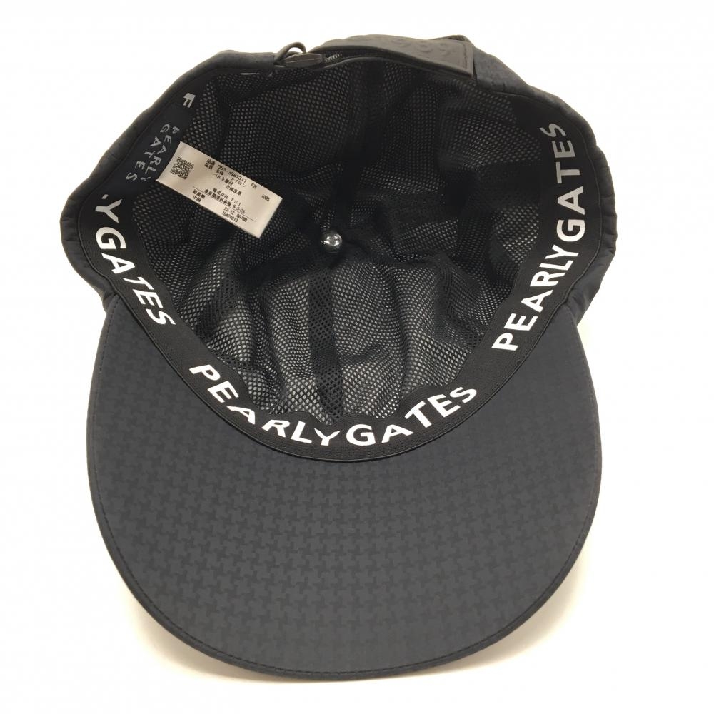 【超美品】パーリーゲイツ レインキャップ 黒 地模様 ロゴ白 ナイロン100% FR ゴルフウェア PEARLY GATES