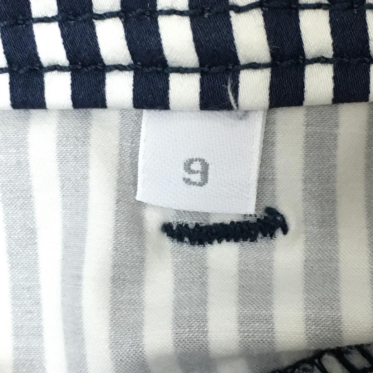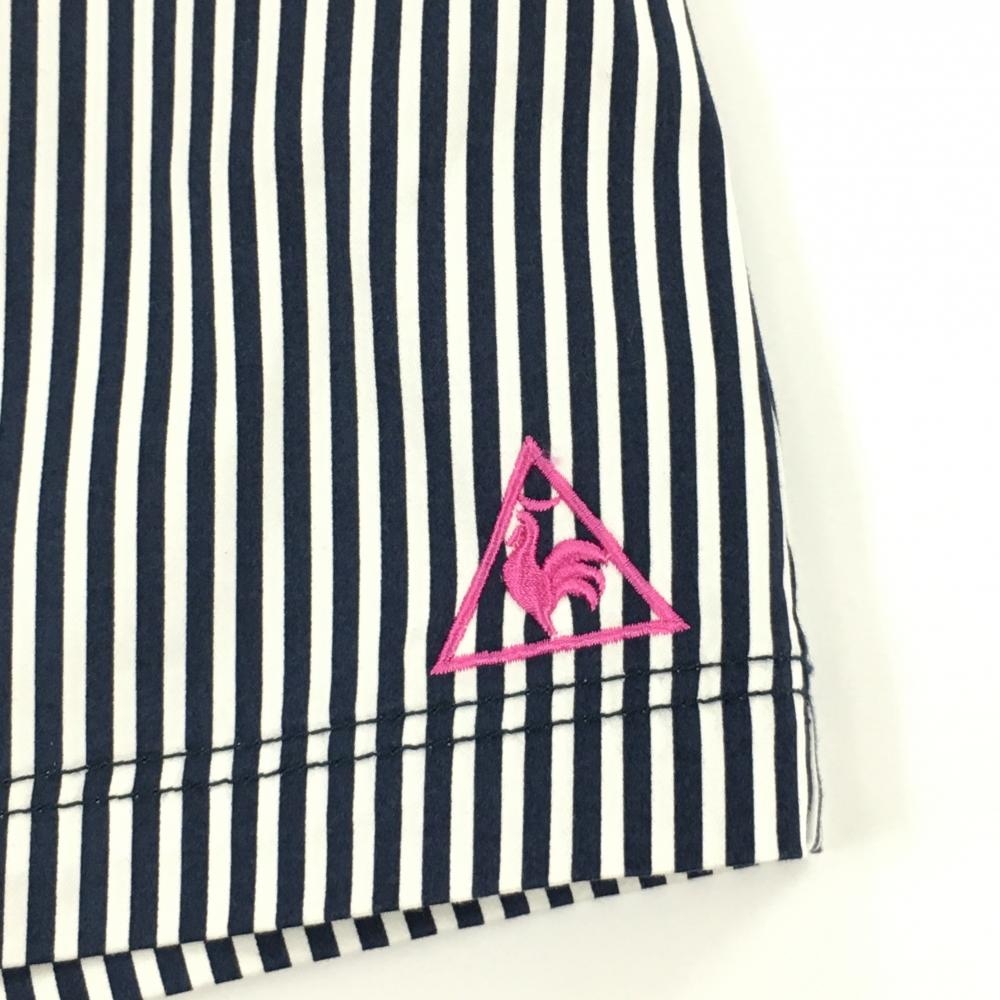 【美品】ルコックゴルフ スカート 白×ネイビー ストライプ ロゴピンク レディース 9 ゴルフウェア le coq sportif