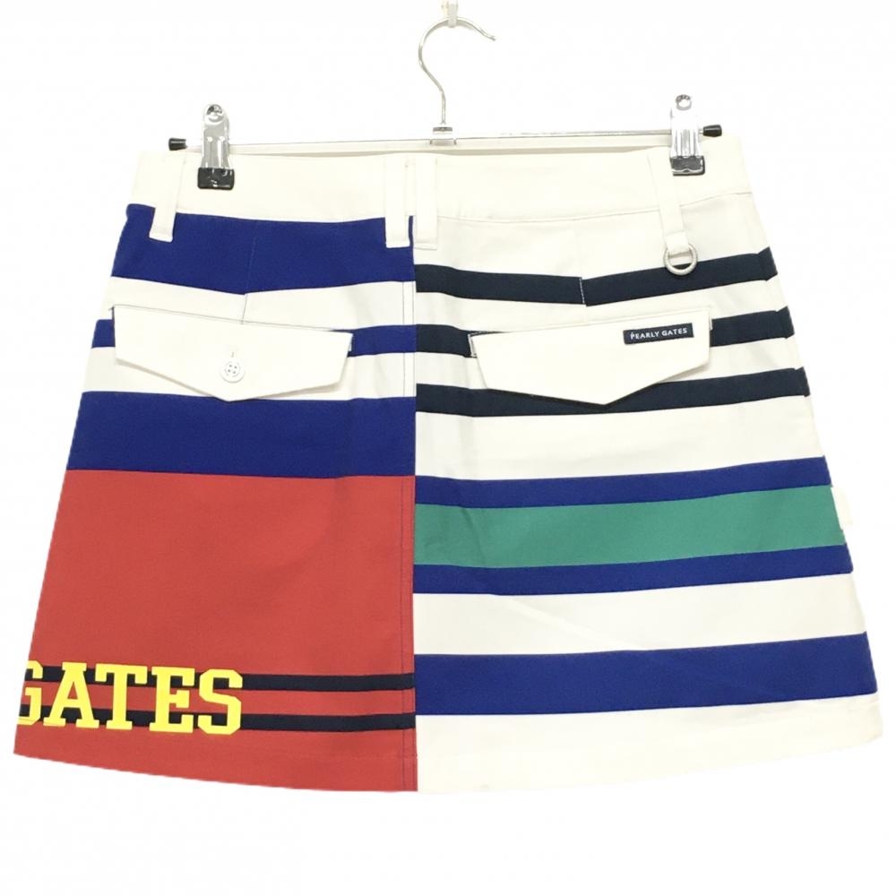 【超美品】パーリーゲイツ スカート 白×マルチカラー ランダムボーダー ストレッチ レディース 1(M) ゴルフウェア PEARLY GATES