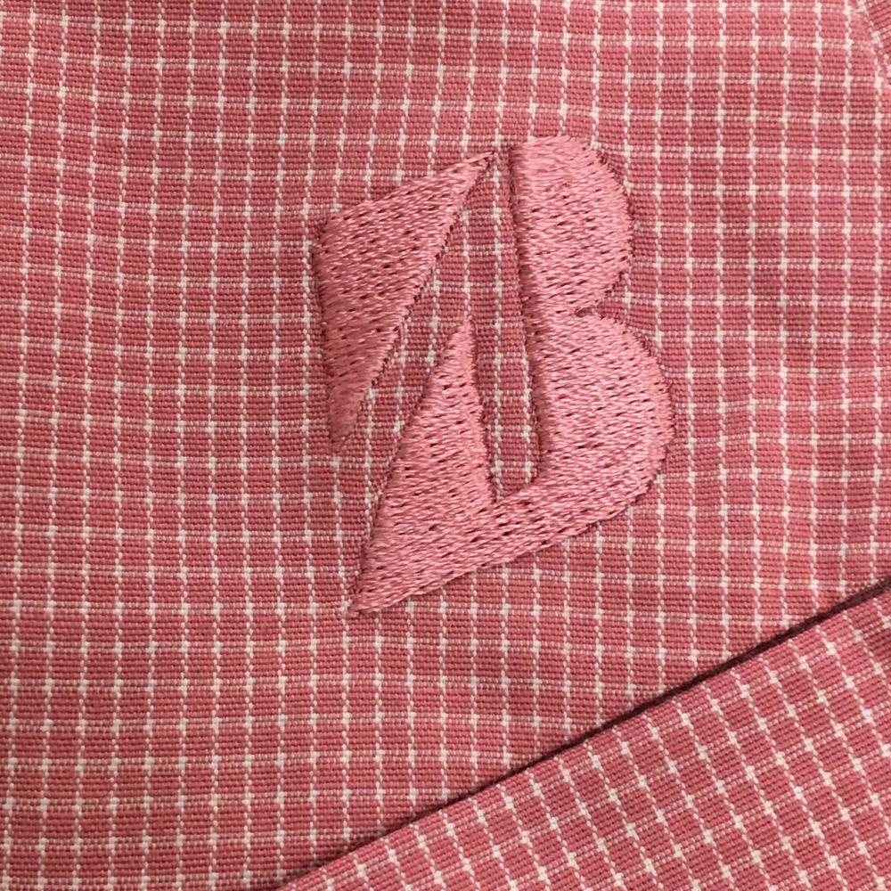 【超美品】ブリヂストンTOURB パンツ スモーキーピンク×白 細目格子柄 ストレッチ メンズ 76 ゴルフウェア Bridgestone