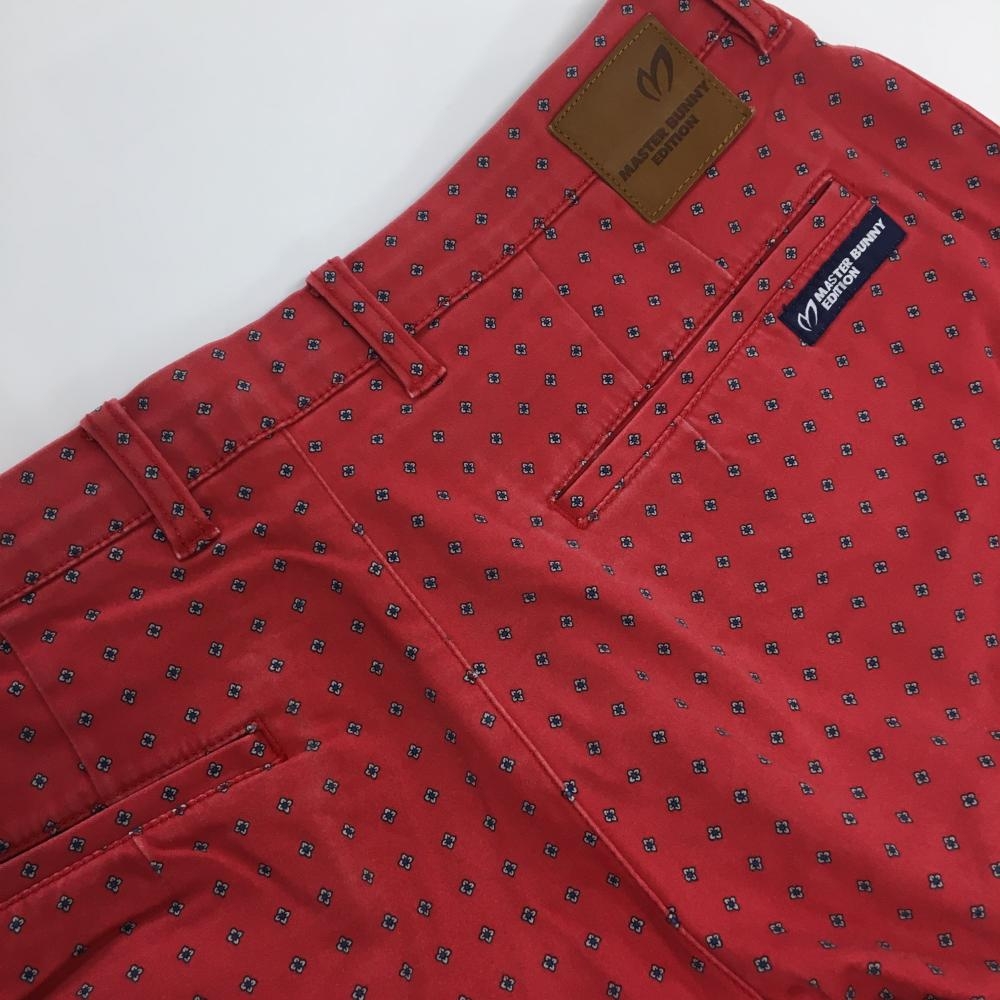 マスターバニー パンツ レッド×ネイビー 小花柄 メンズ 5(L) ゴルフウェア MASTER BUNNY EDITION