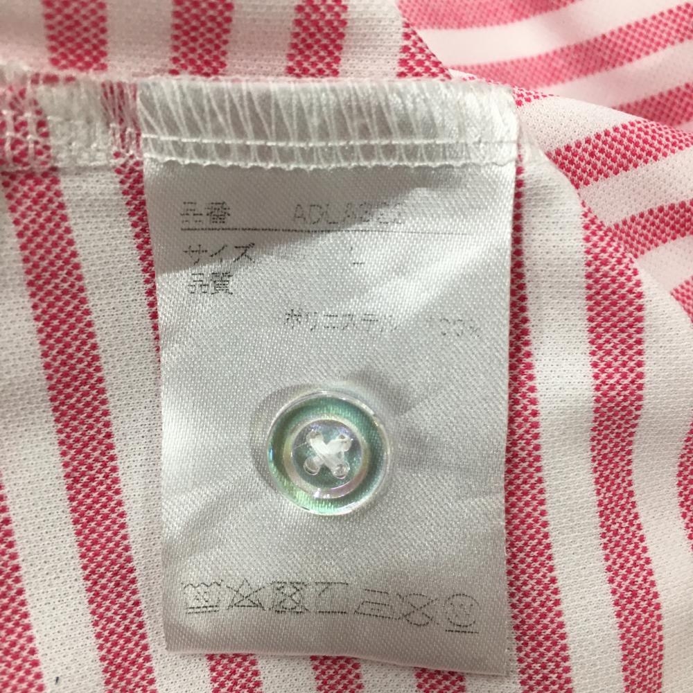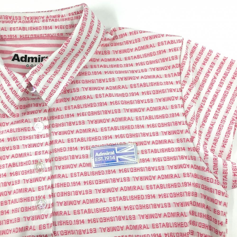【超美品】アドミラル 半袖ポロシャツ 白×ピンク ボーダー 英字総柄 胸元ロゴ レディース L ゴルフウェア Admiral