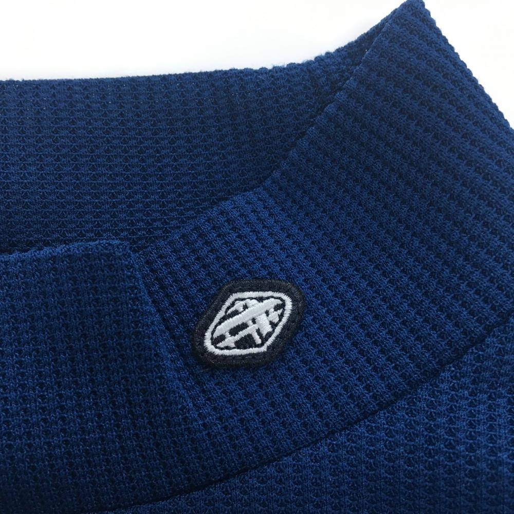 【超美品】フィドラ 長袖ハイネックシャツ ネイビー×ブルー 胸元ライン メンズ XL/TG ゴルフウェア FIDRA