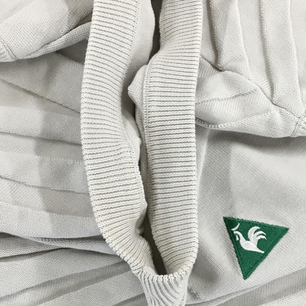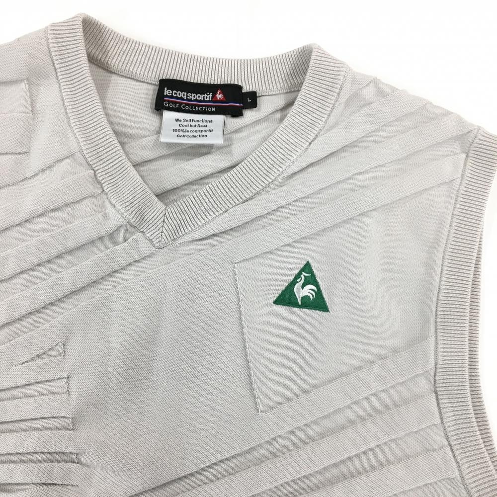 【美品】ルコックゴルフ ニットベスト ライトグレー ロゴグリーン 凹凸生地 コットン100% レディース L ゴルフウェア le coq sportif