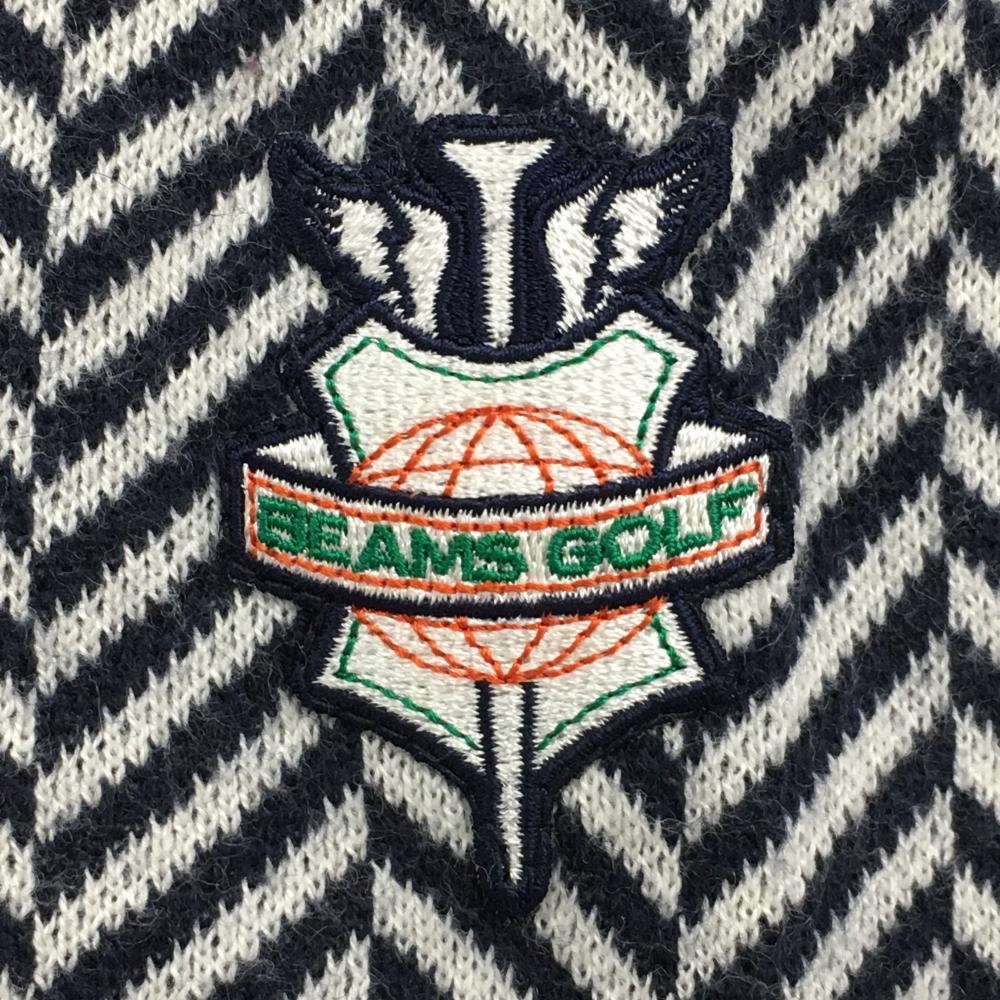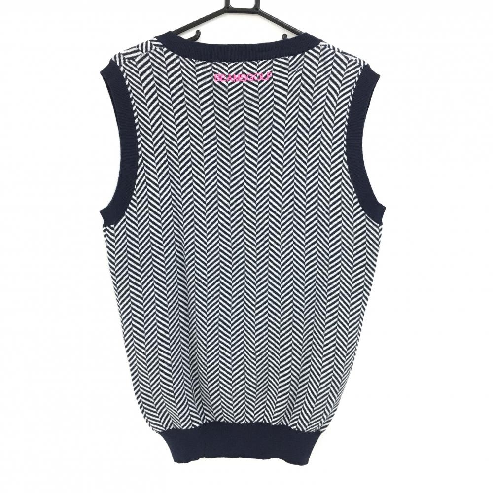 【美品】ビームスゴルフ ニットベスト ネイビー×白 Vネック ヘリンボーン メンズ L ゴルフウェア BEAMS GOLF