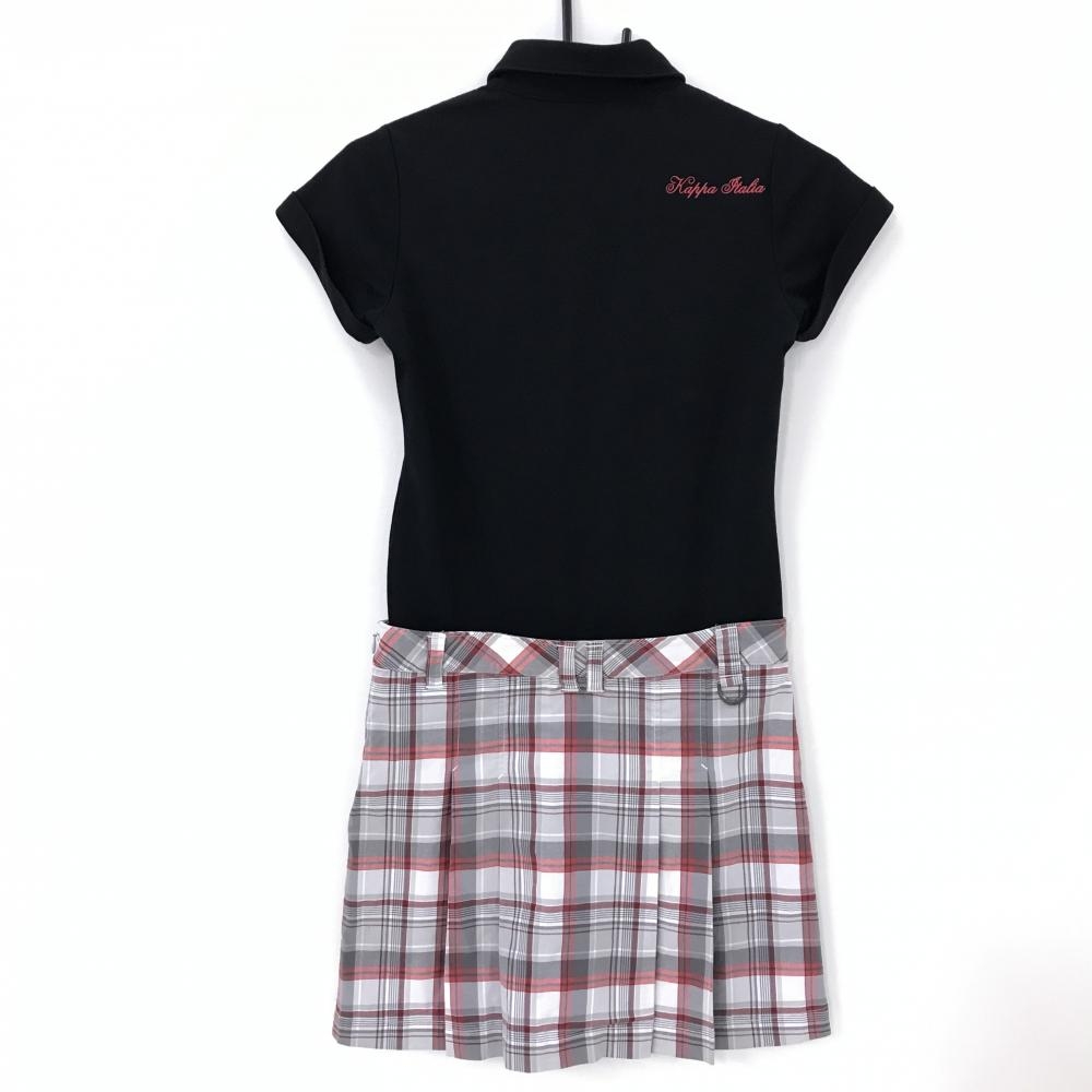 【超美品】カッパ 半袖ポロワンピース 黒×白 チェックスカート ラインストーンロゴ レディース S ゴルフウェア Kappa