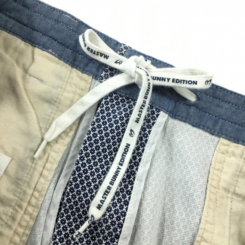 【美品】マスターバニー パンツ ネイビー×白 小花柄 ウエスト調節紐付 メンズ 6(XL) ゴルフウェア MASTER BUNNY EDITION