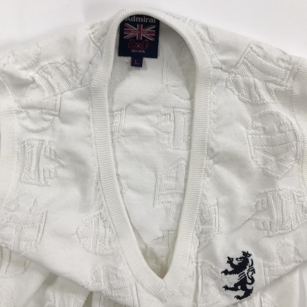 【美品】アドミラル ニットベスト 白 エンブレム総柄 レディース L ゴルフウェア Admiral