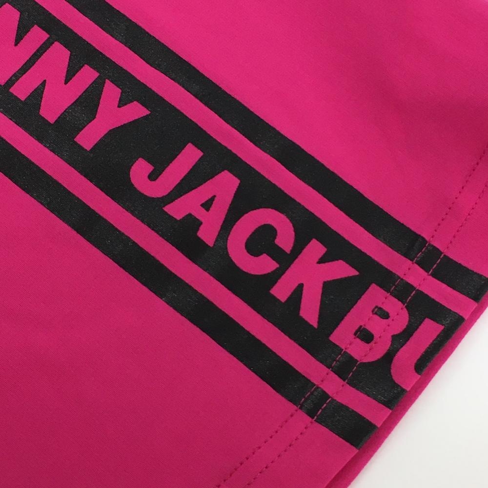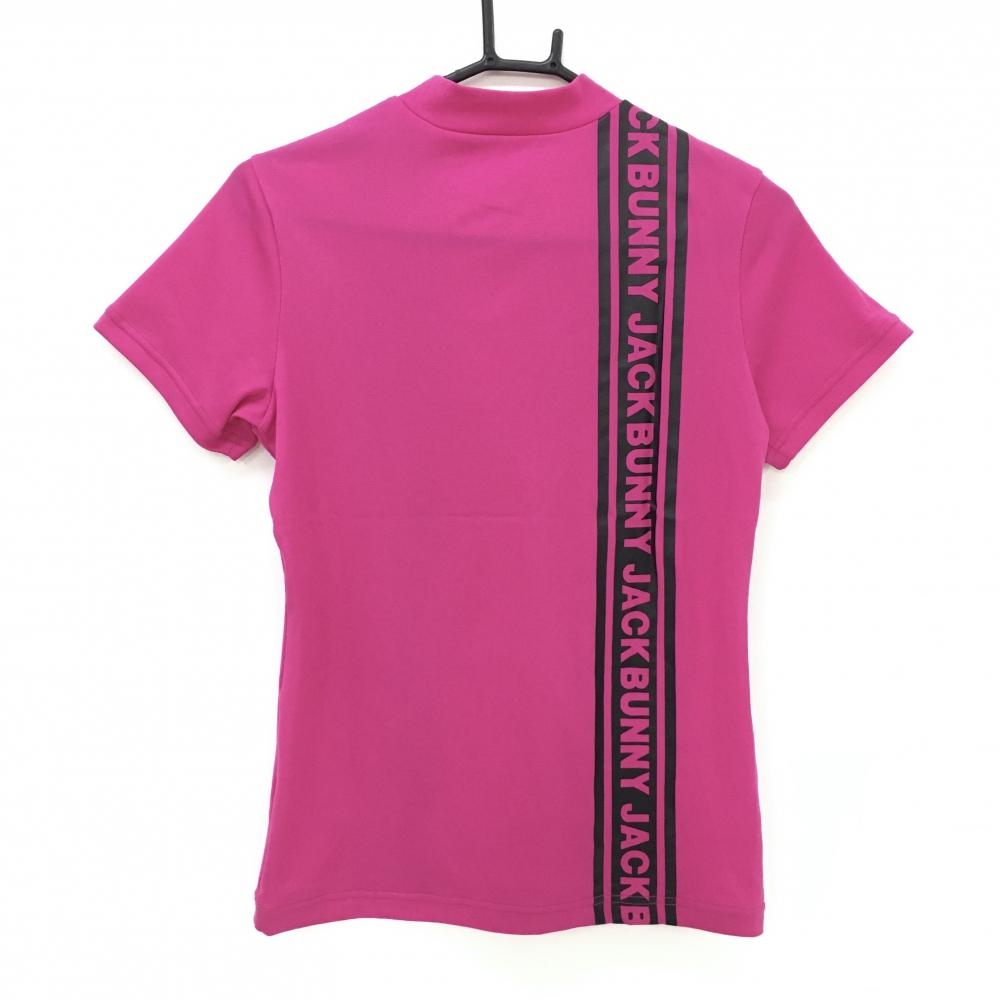 【超美品】ジャックバニー 半袖ハイネックシャツ ピンク×黒 ロゴライン レディース 00(XS) ゴルフウェア Jack Bunny