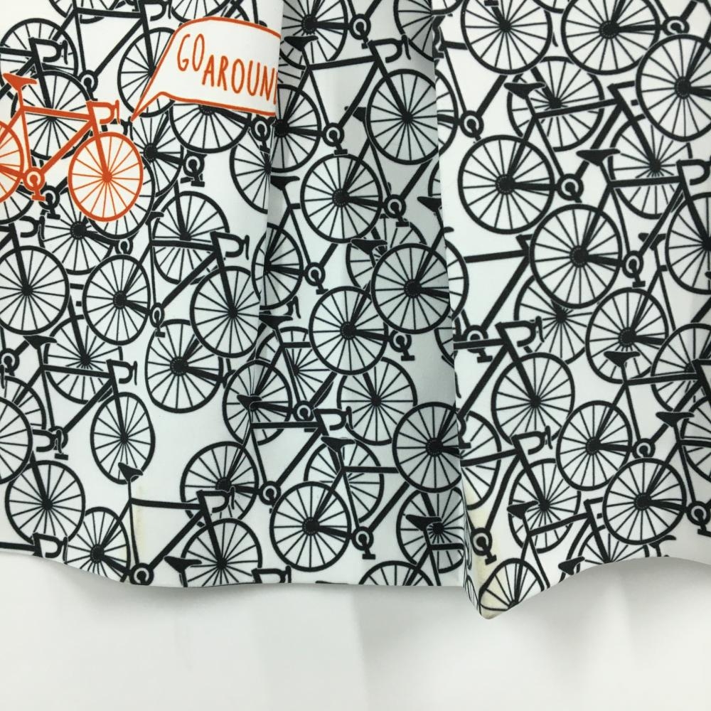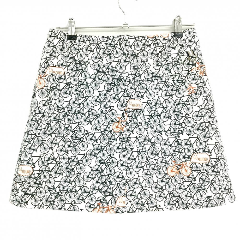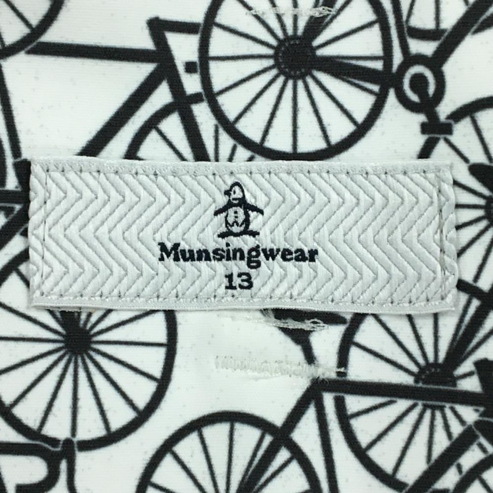 【美品】マンシングウェア スカート 白×ネイビー 自転車総柄 ボックスプリーツ レディース 13 ゴルフウェア Munsingwear