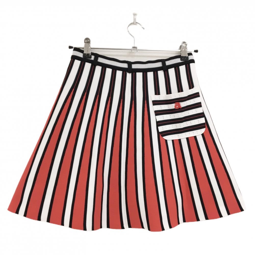 アルチビオ ニットスカート 白×レッド×黒 ストライプ調 ウエストゴム レディース 36(S) ゴルフウェア archivio