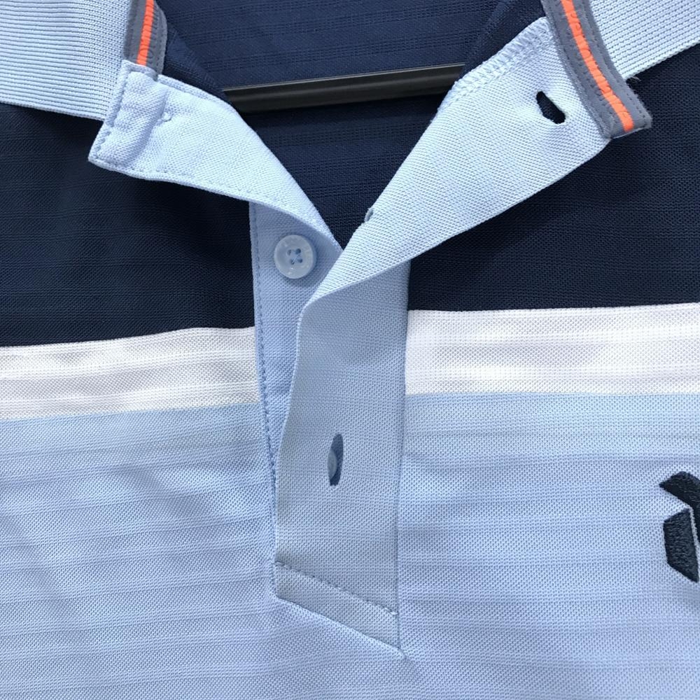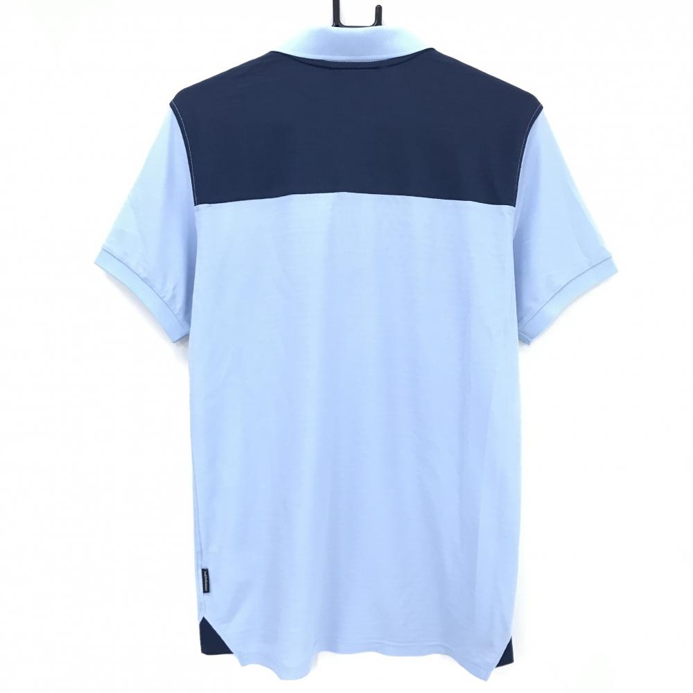 ピークパフォーマンス 半袖ポロシャツ ライトブルー×ネイビー ボーダー地模様 襟一部メッシュ メンズ S ゴルフウェア Peak Performance