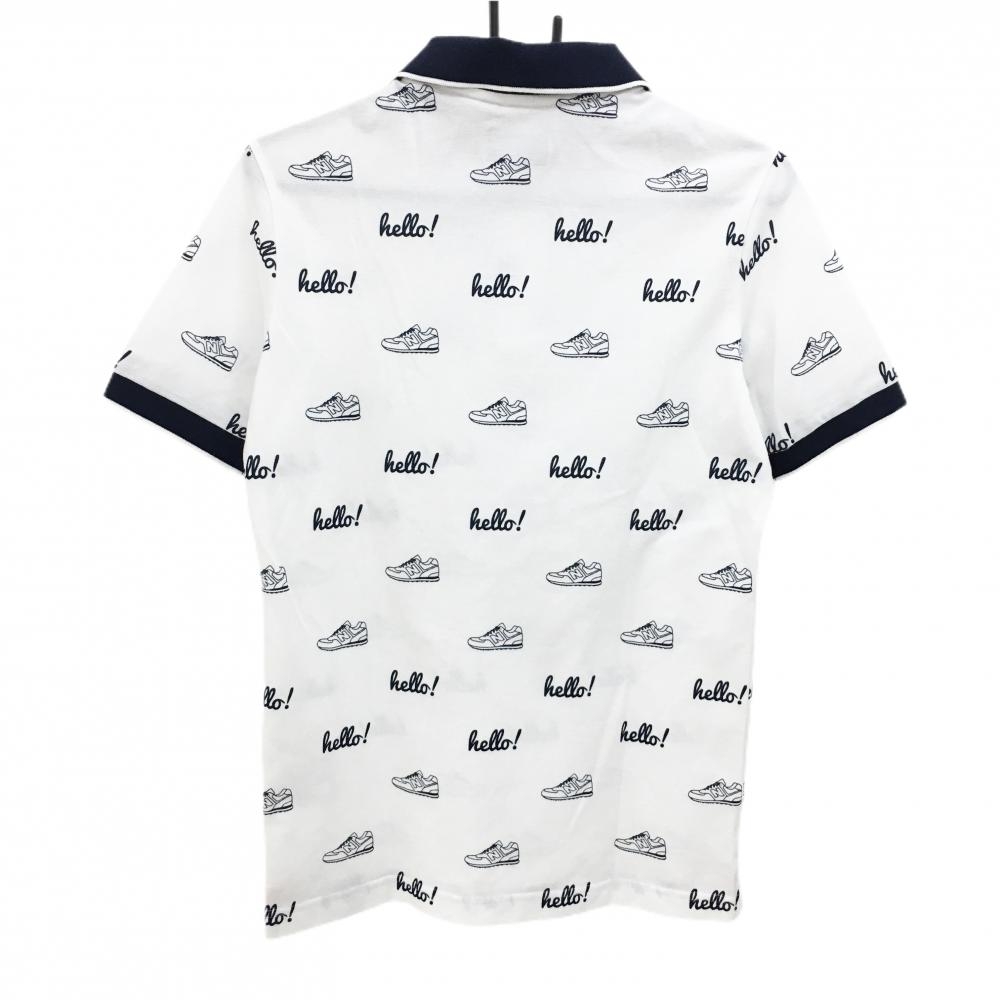 ニューバランスゴルフ 半袖ポロシャツ 白×ネイビー 総柄 スニーカー メンズ 4(M) ゴルフウェア New Balance