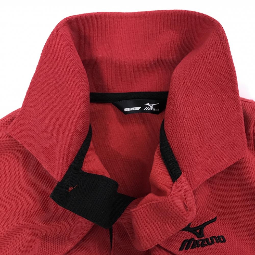 ミズノ 半袖ポロシャツ レッド×黒 ロゴ刺しゅう メンズ M ゴルフウェア MIZUNO