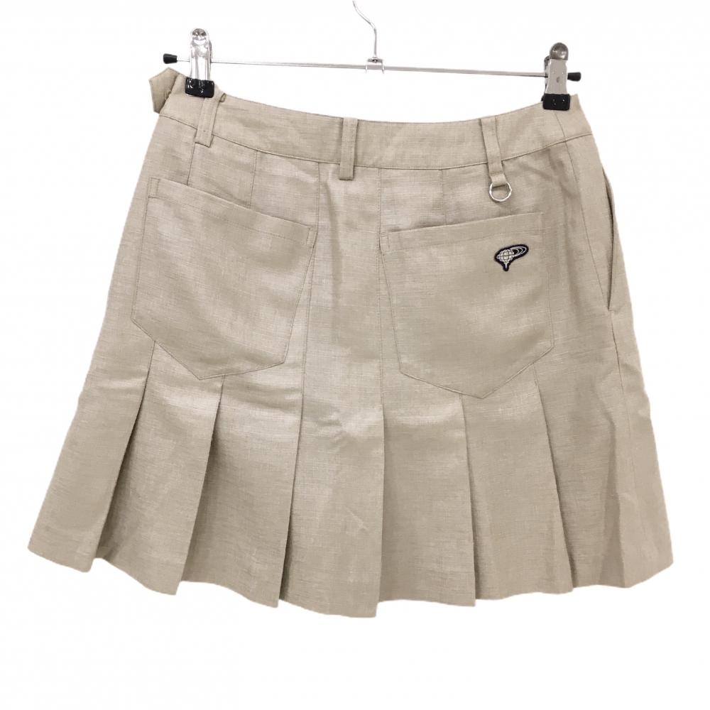 【美品】ビームスゴルフ プリーツスカート ベージュ 地模様 ロゴワッペン 薄手 レディース S ゴルフウェア BEAMS GOLF