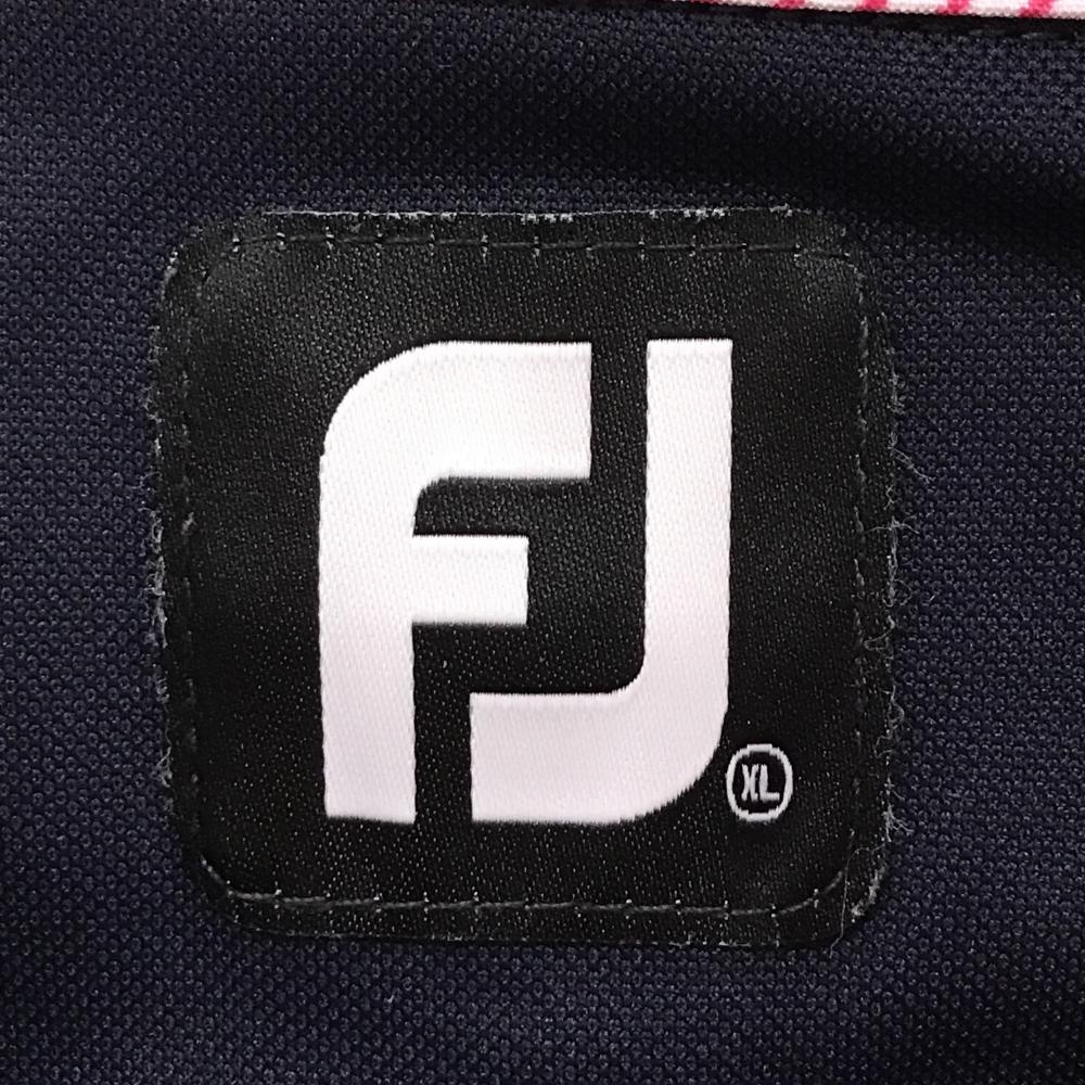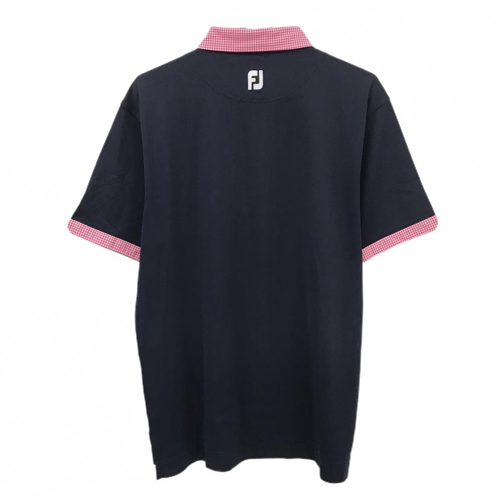 フットジョイ 半袖ポロシャツ ネイビー×ピンク 襟・ポケット千鳥格子 ボタンダウン メンズ XL ゴルフウェア FootJoy