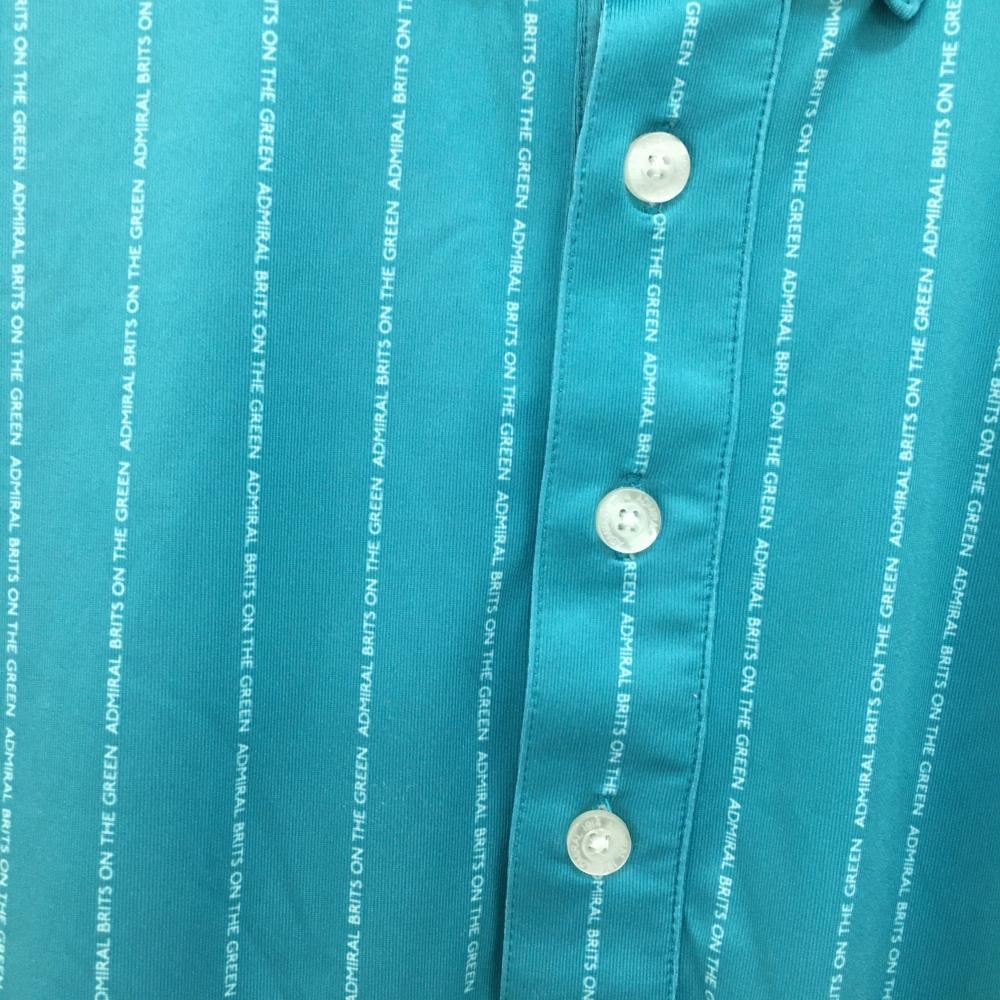 アドミラル 半袖ポロシャツ ブルーグリーン×白 英字ストライプ ロゴ刺しゅう メンズ XL ゴルフウェア Admiral