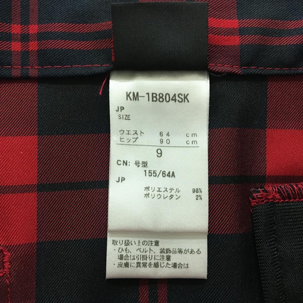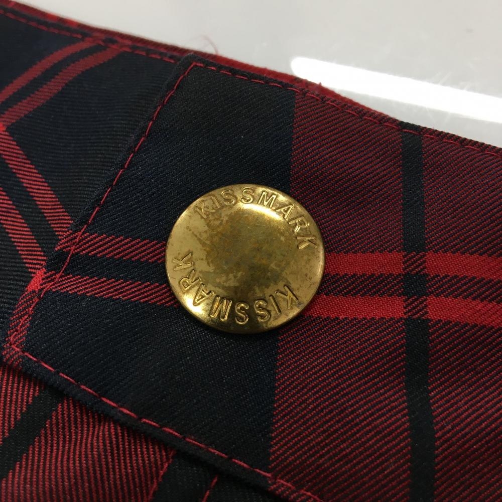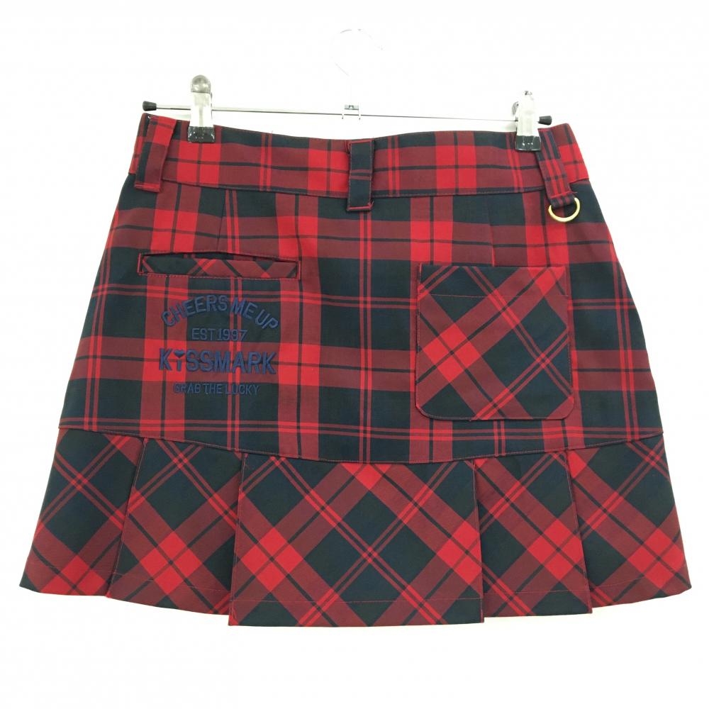 【美品】キスマーク スカート レッド×黒 チェック 裾プリーツ レディース 9(M) ゴルフウェア kissmark
