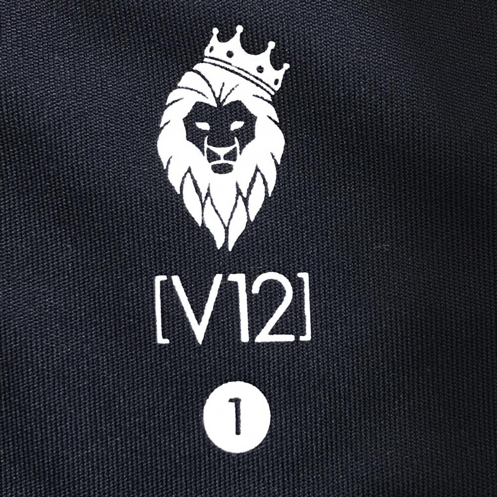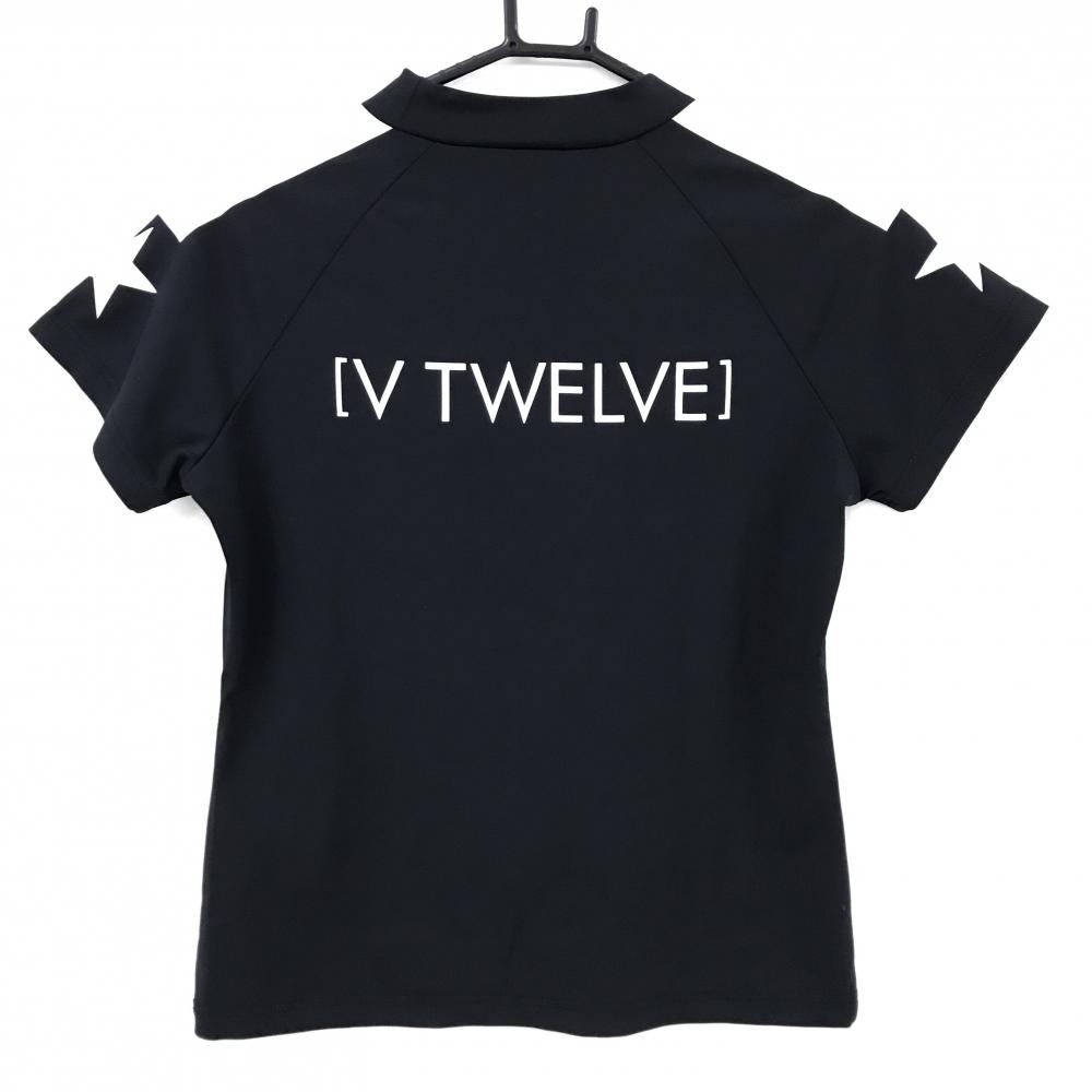 【超美品】V12 半袖ハイネックシャツ 黒×白 フロントプリント ストレッチ レディース 1(M) ゴルフウェア V12
