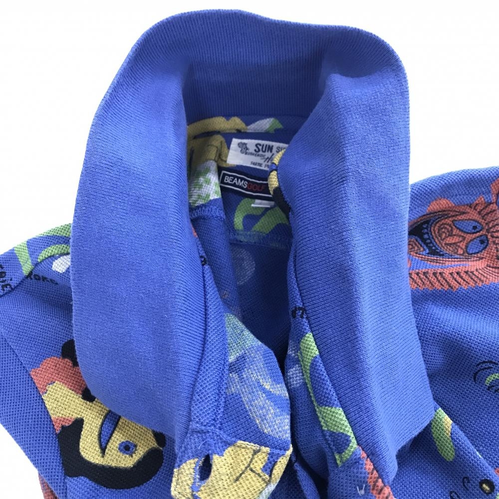 ビームスゴルフ×SUNSURF 半袖ポロシャツ ブルー×マルチカラー 総柄 レディース M ゴルフウェア BEAMS GOLF