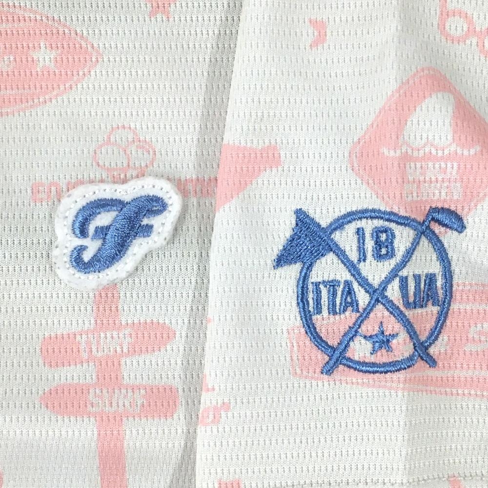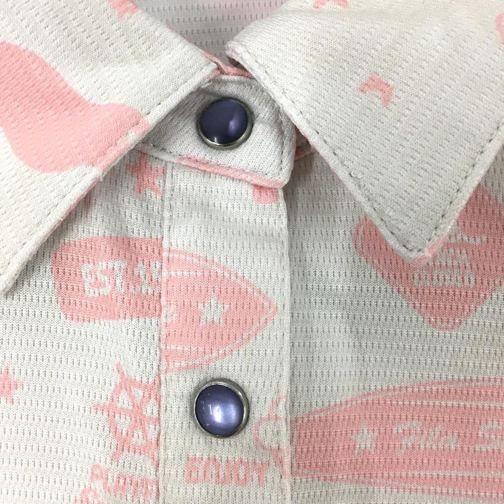 【美品】フィラゴルフ 半袖ポロシャツ ライトグレー×ライトピンク 総柄 スナップボタン レディース L ゴルフウェア FILA GOLF